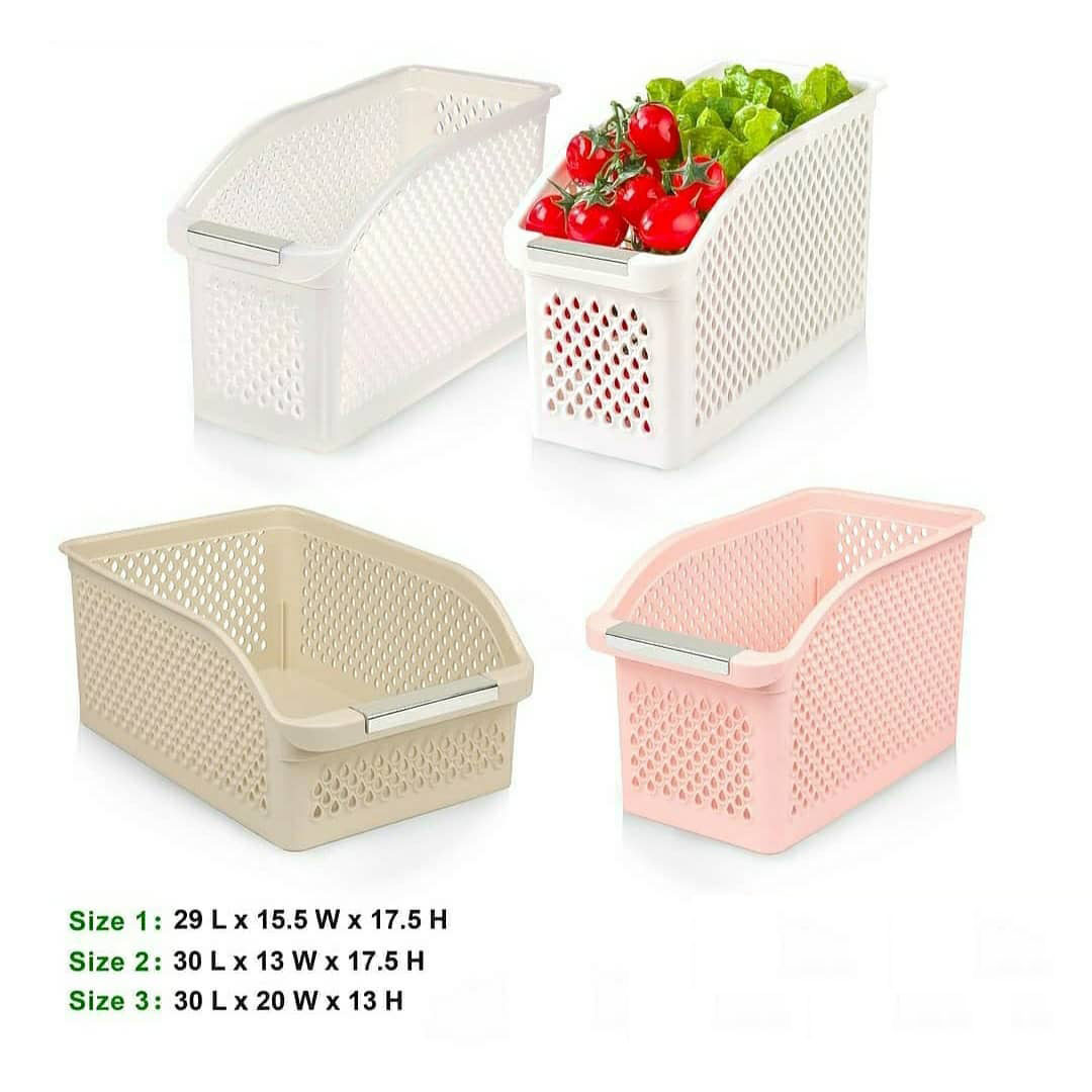 سلة تنظيم بثلاثة أحجام مختلفة لتخزين متعدد الوظائف ولتنظيم خزائن المطبخ او أرفف الثلاجة و مستلزمات المطبخ الاخرى مناسبة للخضار او الفواكة او لتنظيم المعلبات الى اخره .....