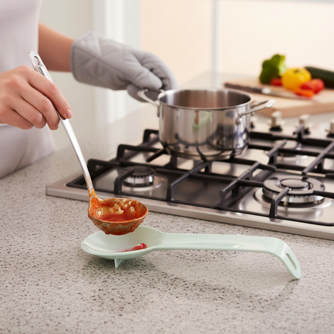 طبخ نظيف بدون فوضى: يحافظ على أسطح المطبخ نظيفة من خلال توفير مكان مرتفع لوضع الملاعق وأدوات الطبخ.
