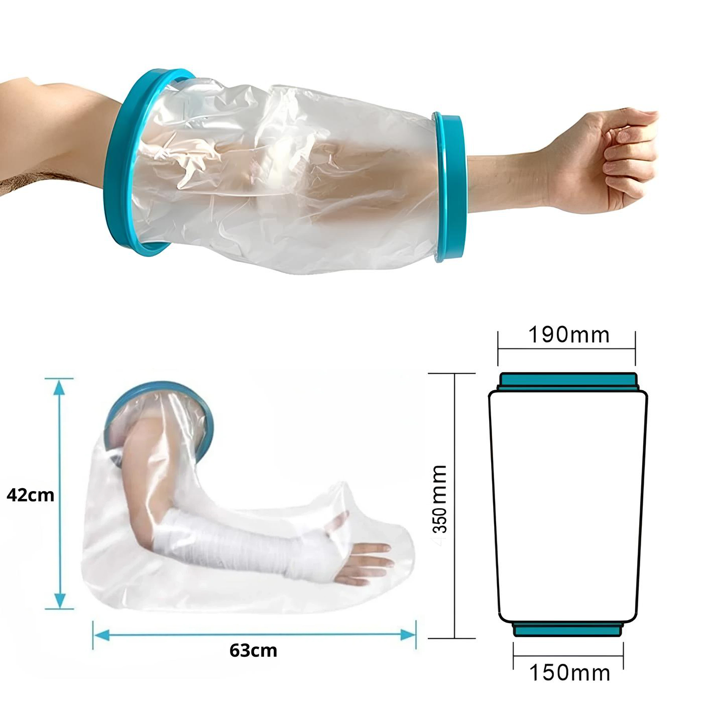 • واقي مريح مقاوم للماء ينزلق فوق جبيرة أو ضمادة.