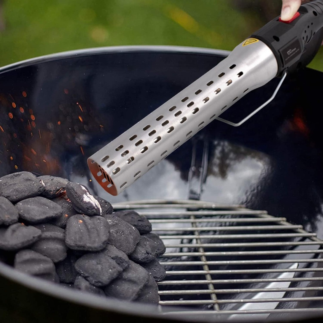 يمكن أن تضمن ولاعة الشواء بالفحم الكهربائي إشعال جميع أنواع الوقود الصلب ، بما في ذلك الفحم ووقود الدخان. يستغرق الأمر بضع دقائق فقط حتى يكتمل. السر يكمن في حرارته القوية والمركزة. تحتاج فقط إلى المكان والفتح. تقوم المروحة المدمجة بتوجيه الحرارة بشكل فعال حتى يصل الوقود بسرعة