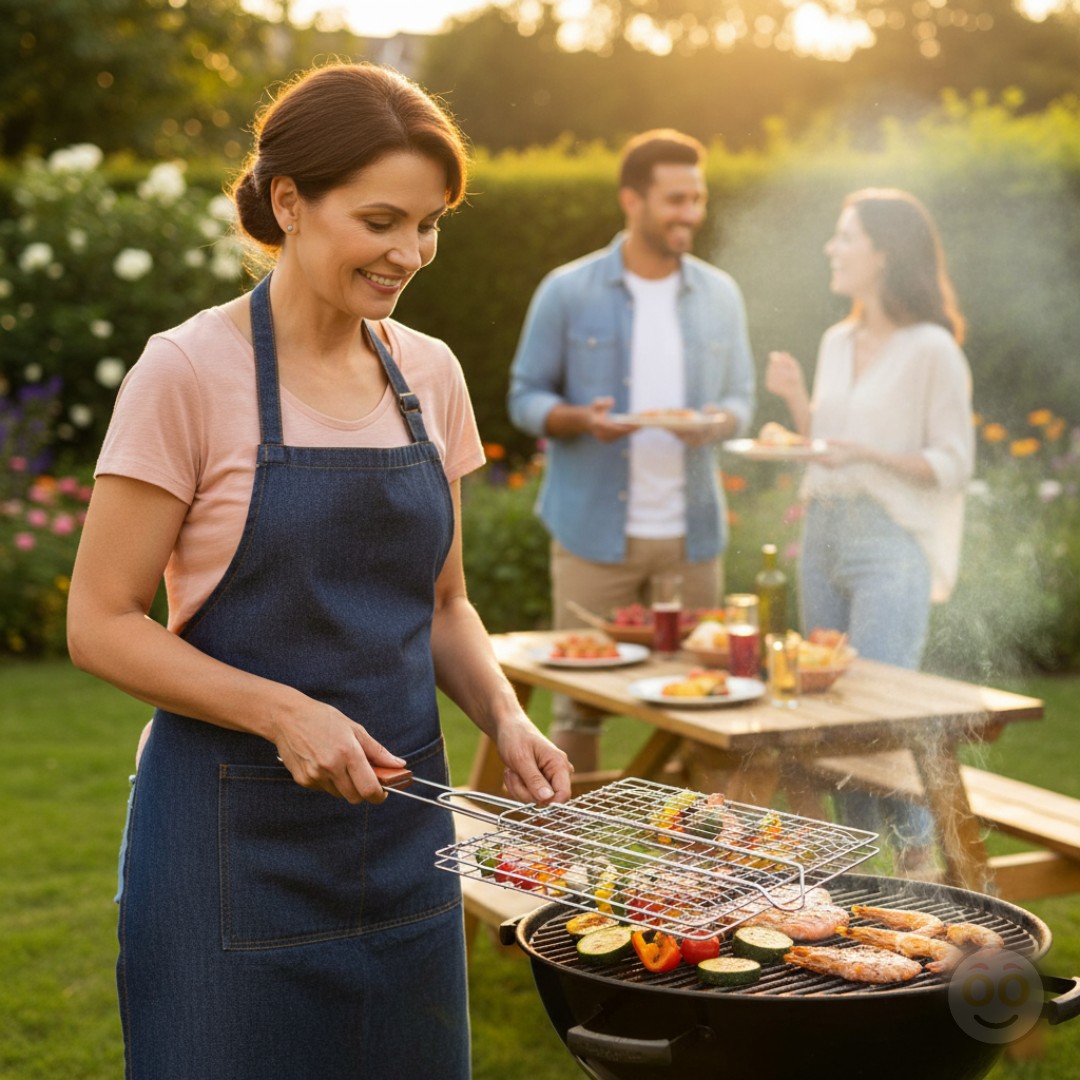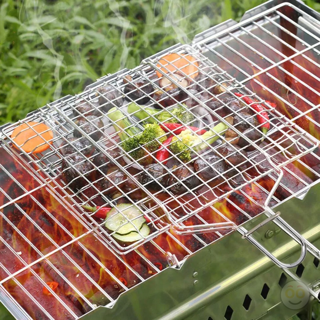 قابل للقفل: تحبس الشبكة القابلة للقفل الطعام في مكانه وتسمح بقلب الطعام المشوي بسهولة.