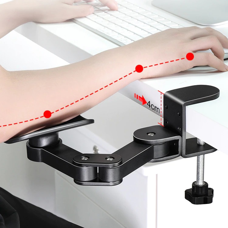 مسند ذراع معدني قابل للتعديل ، دعم المعصم ، مسند ذراع موسع للكمبيوتر ، وسادة ماوس مريحة لليد ، حماية الكتف ، تساعد على الجلوس في الموضع الصحيح ، وتخفيف آلام الكتف. مادة الألومنيوم تجعلها متينة