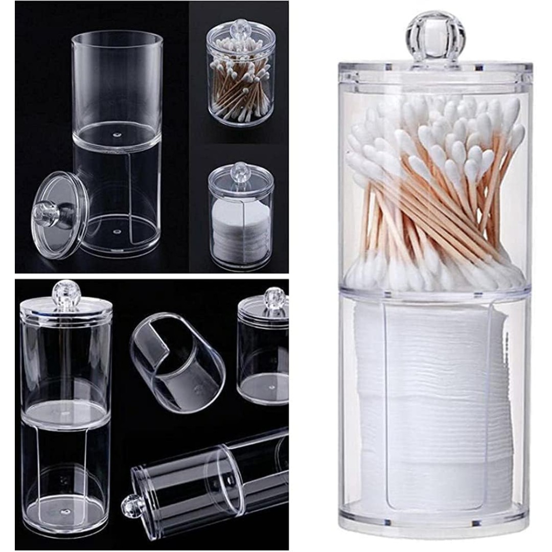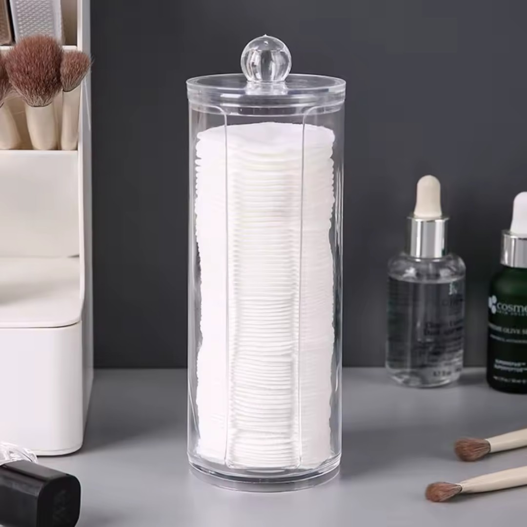 منظم مستحضرات تجميل أكريليك شفاف: حاوية تخزين شفافة مصممة لتنظيم أقراص القطن وأعواد القطن وإسفنجات المكياج والإكسسوارات الصغيرة بشكل مرتب مع الحفاظ عليها نظيفة وسهلة الوصول.