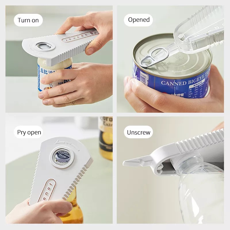 متعدد الوظائف: لا يمكن لفتاحة البرطمانات فقط فتح برطمان طعام ، بل يمكنها أيضًا فتح علبة مربى ، زجاجة مشروبات ، زجاجة مشروبات ، إلخ.