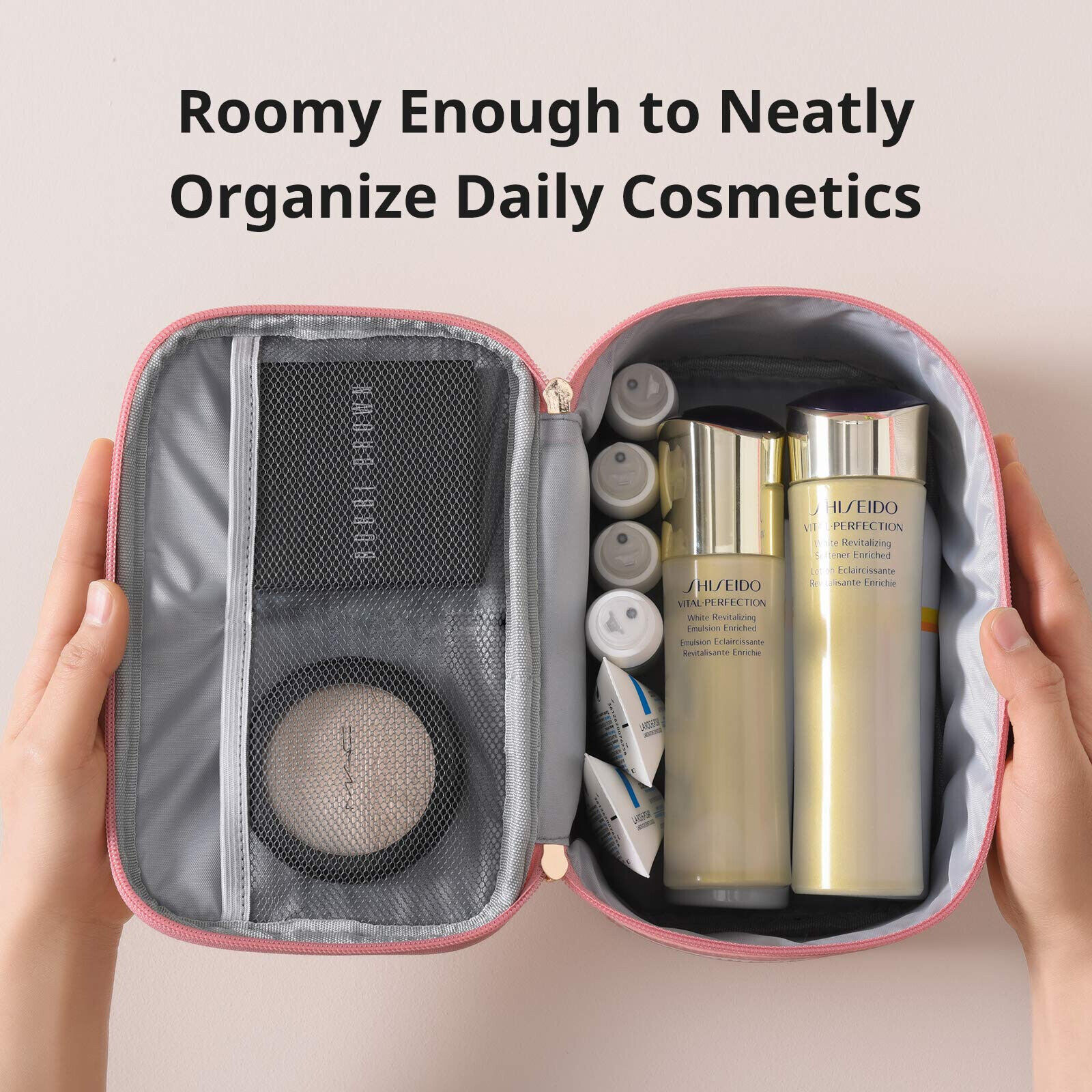هذه الحقيبة التجميلية التي تحتوي على جيوب شبكية بداخلها يمكن أن ترى ما بداخلها مفيد للغاية.