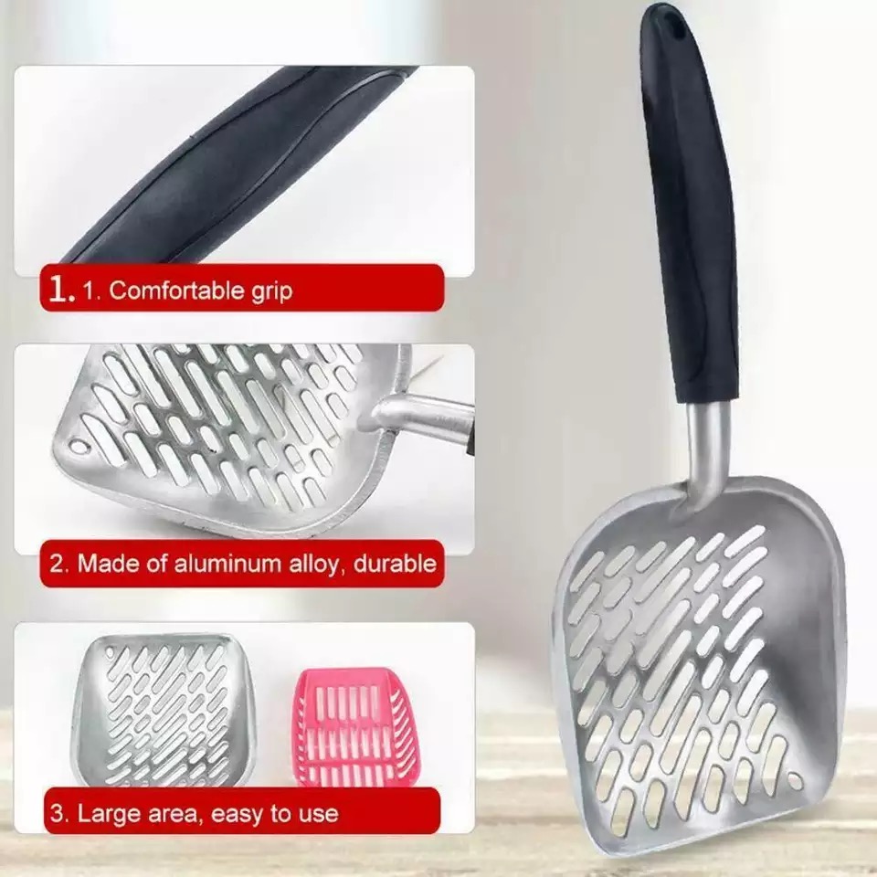 إن مجرفة قمامة القطط مصنوعة من سبائك الألومنيوم القوية ، وهي مقاومة للماء والصدأ والتآكل. مقبض مطاطي طويل مريح وخفيف الوزن ولكنه متين ويدوم لفترة أطول من المقبض البلاستيكي.