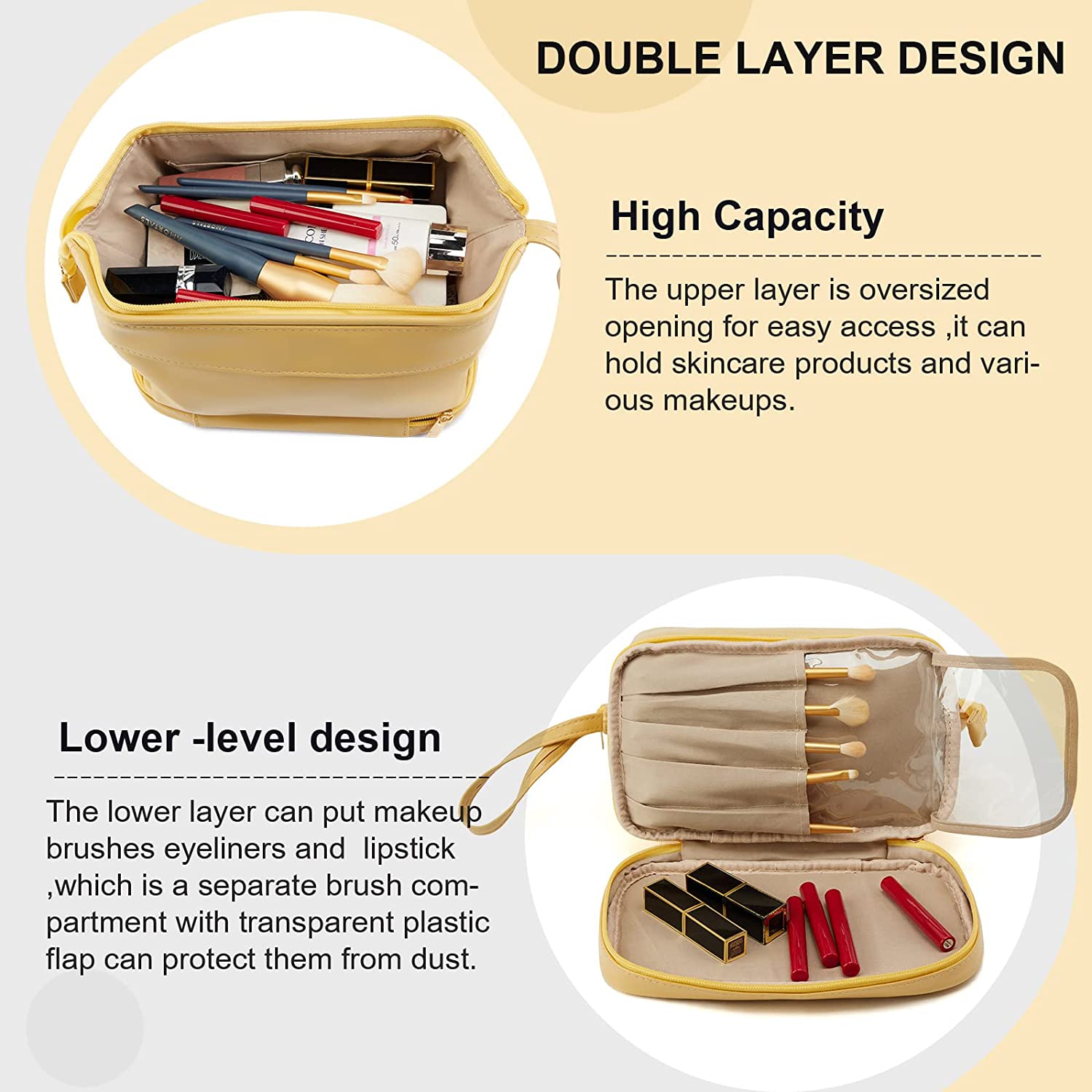 تصميم مزدوج الطبقات - تنقسم حقيبة مستحضرات التجميل النسائية هذه إلى مناطق تخزين علوية وسفلية. يمكن أن تحتوي الطبقة العليا على منتجات العناية بالبشرة ومستحضرات التجميل المختلفة. يمكن للطبقة السفلية وضع فرش الماكياج ومحدد العيون وطلاء الشفاه وما إلى ذلك. وهي مناسبة جدًا للاستخدام في الحياة اليومية والسفر.