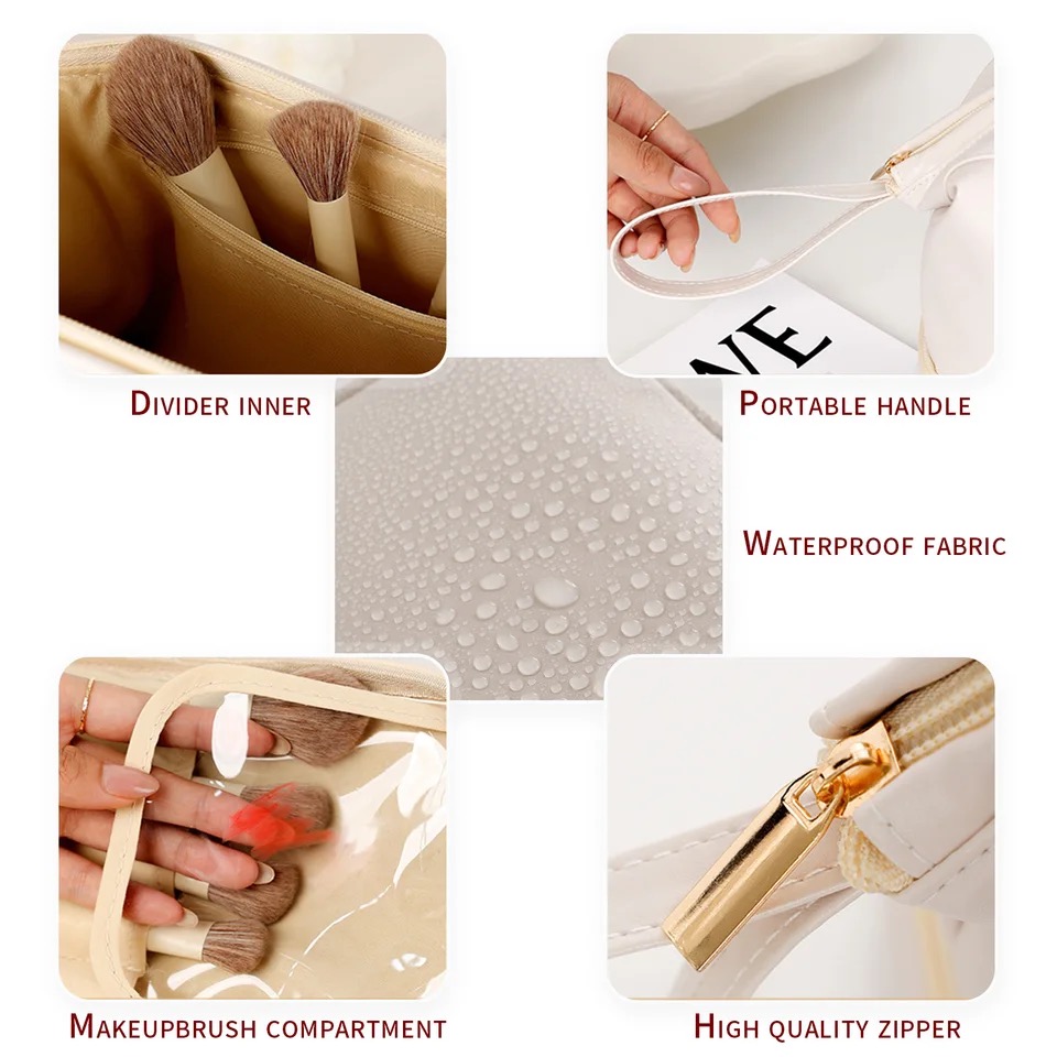 جودة عالية - حقيبة مكياج السفر هذه مصنوعة من نسيج جلدي بولي يوريثان مقاوم للماء ممتاز ، ناعم ، ناعم ، لا يبهت ، متين وسهل التنظيف.