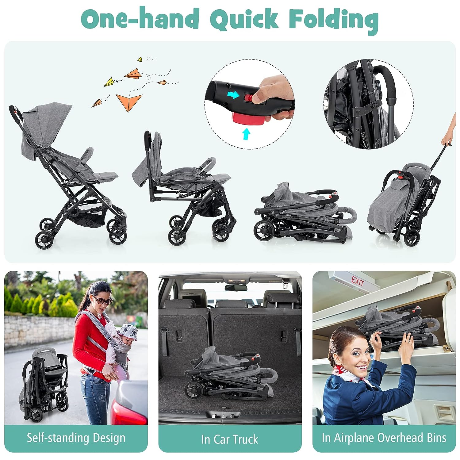 عربة أطفال قابلة للطي بيد واحدة أنيقة ومريحة