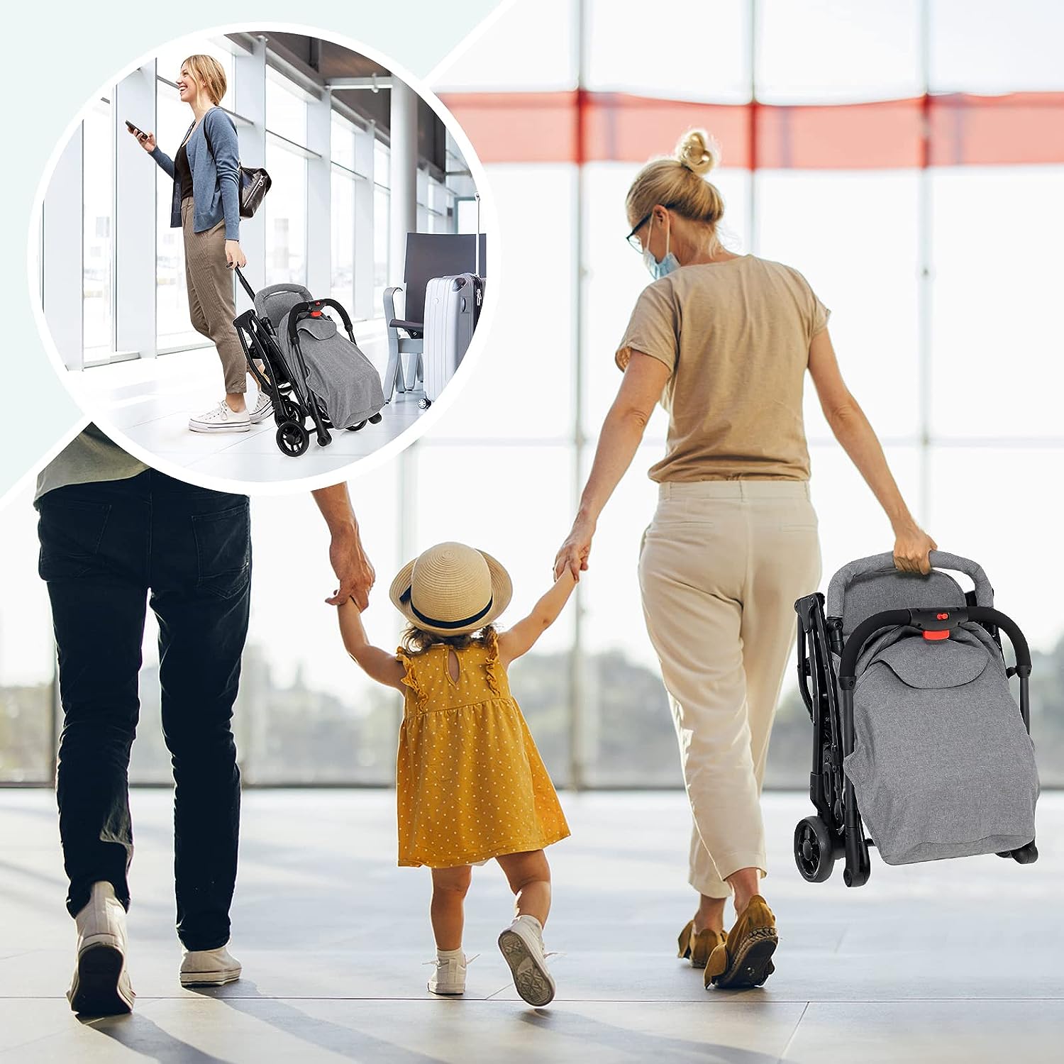 مناسبة للرحلات، التسوق، والسفر الجوي. مثالية للأطفال منذ الولادة وحتى عمر 3 سنوات تقريباً