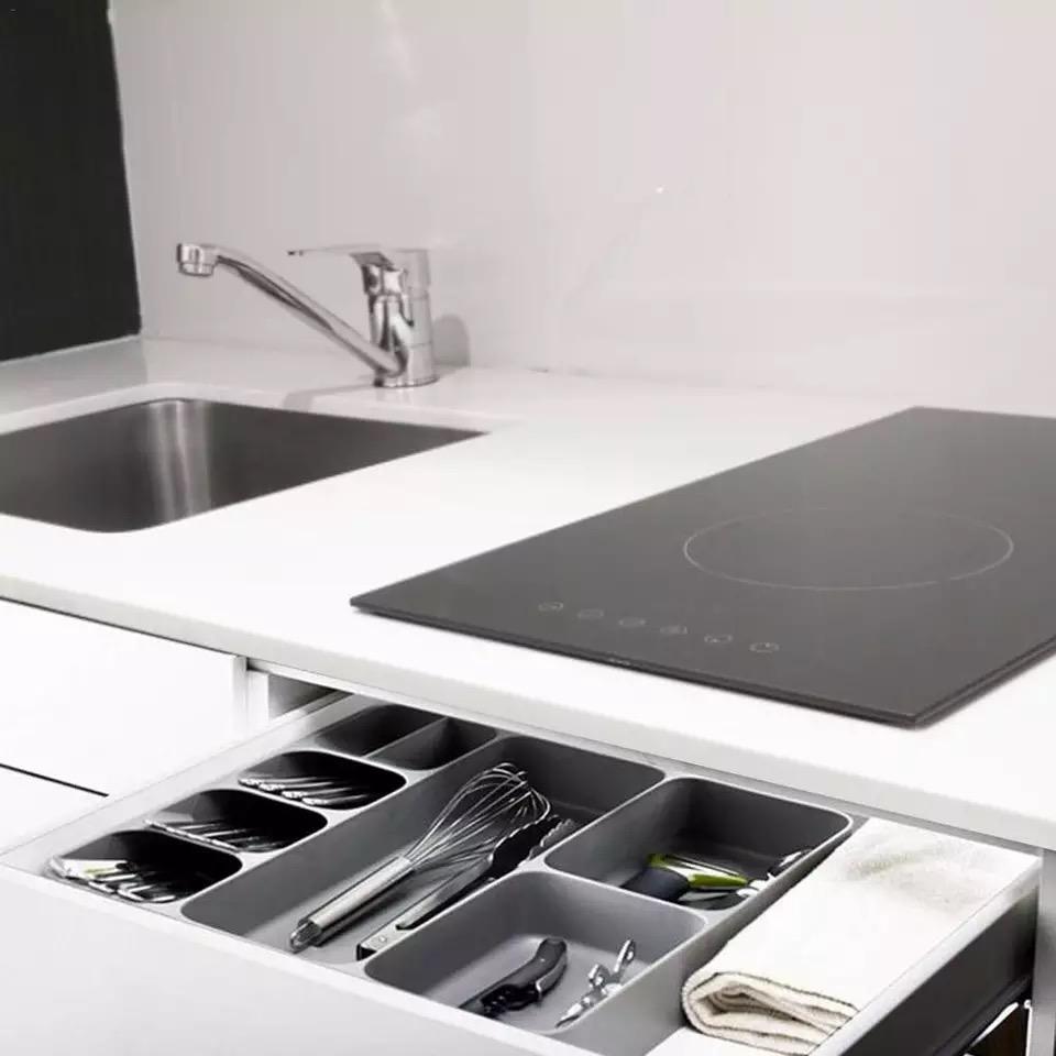 • الأبعاد المثالية: بحجم 37 سم × 36 سم × 5 سم، يناسب معظم الأدراج المطبخية القياسية ويوفر أقسامًا عميقة لحفظ كل شيء من ملاعق الشاي إلى السبيدولات.
