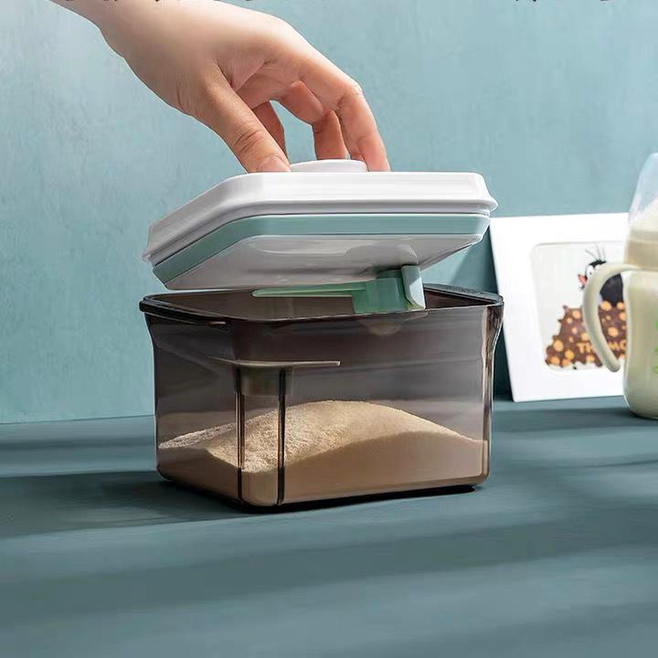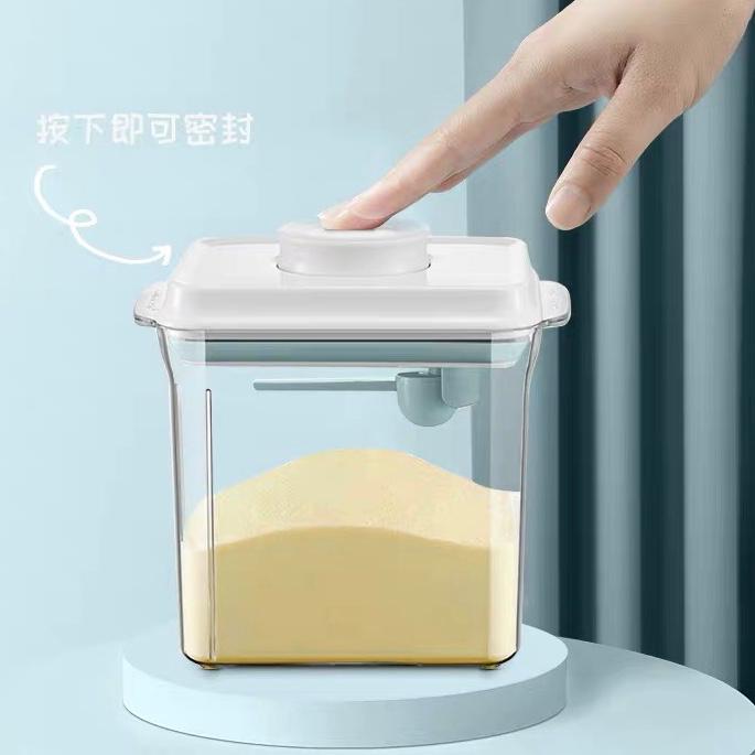 حافظة تستخدم لتخزين الحليب الجاف والفواكه والوجبات الخفيفة والوجبات المغذية والأغذية التكميلية والأطعمة الآخري ، من السهل فتحها وإغلاقها بأستخدام أداة التثبيت المفاجئة ، بها ملعقة خاصه بالحافظة على الغطاء لتجنب الأتصال المباشر مع الحليب الجاف ، مقاومة للماء والرطوبة والروائح ، مصنوعة من مواد جودة عالية ، السعة 1 كيلو .