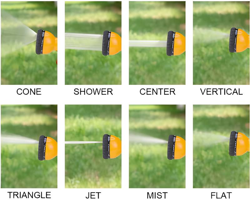 1. 7 أنماط سقاية قابلة للتعديل: كل نمط تم اختياره بعناية له غرض فريد، وكل نمط رش سوف يلبي جميع احتياجات السقاية الخاصة بك. تشمل المركز، المسطح، النفاث، الضباب، المخروط، الكامل، الدش.
