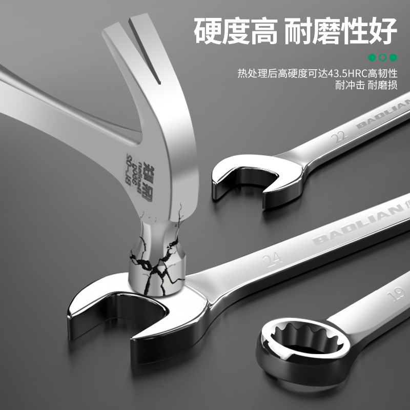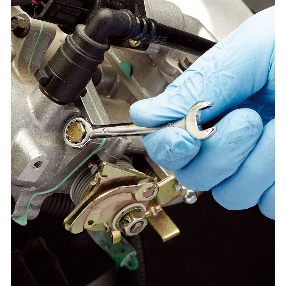 الطرف المفتوح بزاوية 15 درجة بحيث يمكن قلب مفتاح الربط لإشراك المثبتات مرتين في كثير من الأحيان في المساحات الضيقة.
