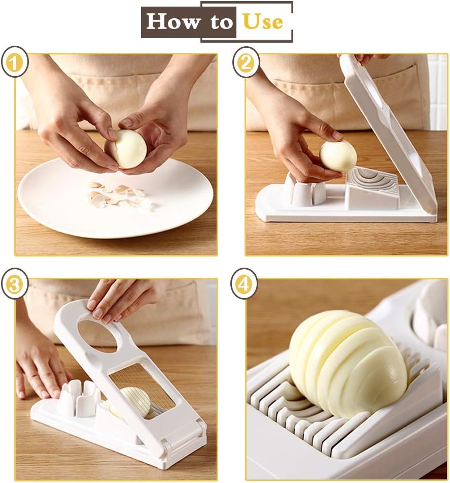 مساعد جيد في المطبخ: قطاعة البيض متعددة الوظائف، متعددة الاستخدامات، يمكنها قطع الأطعمة الناعمة مثل البيض والفراولة والكيوي والموز والطماطم ولحم الخنزير، إلخ. ومساعد المطبخ سهل الاستخدام، سيكون الطبخ أسهل.