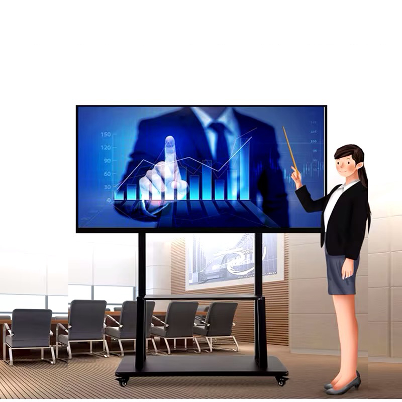 • التصميم: يتميز بقاعدة واسعة مع عجلات لسهولة الحركة، مما يسمح للمستخدمين بنقل الشاشة بين الغرف أو المواقع المختلفة.