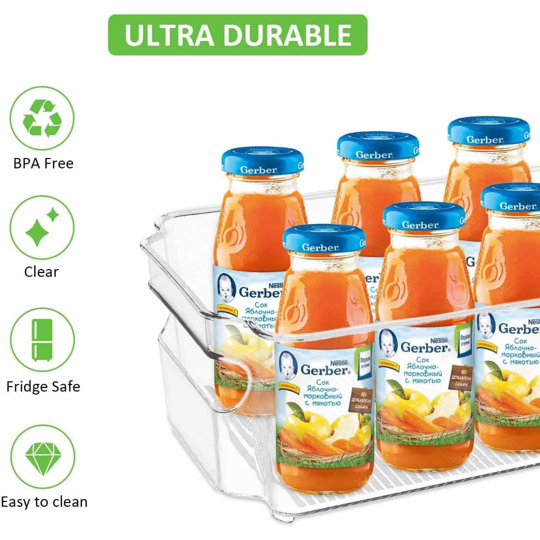 مادة متينة وآمنة للطعام: مصنوعة من بلاستيك عالي الجودة وخالي 100% من مادة BPA الآمنة للطعام، هذه الصناديق المنظمة للثلاجة مقاومة للكسر وآمنة للتلامس المباشر مع الطعام—مثالية لتخزين الفواكه، الخضروات، الوجبات الخفيفة، وأكثر.