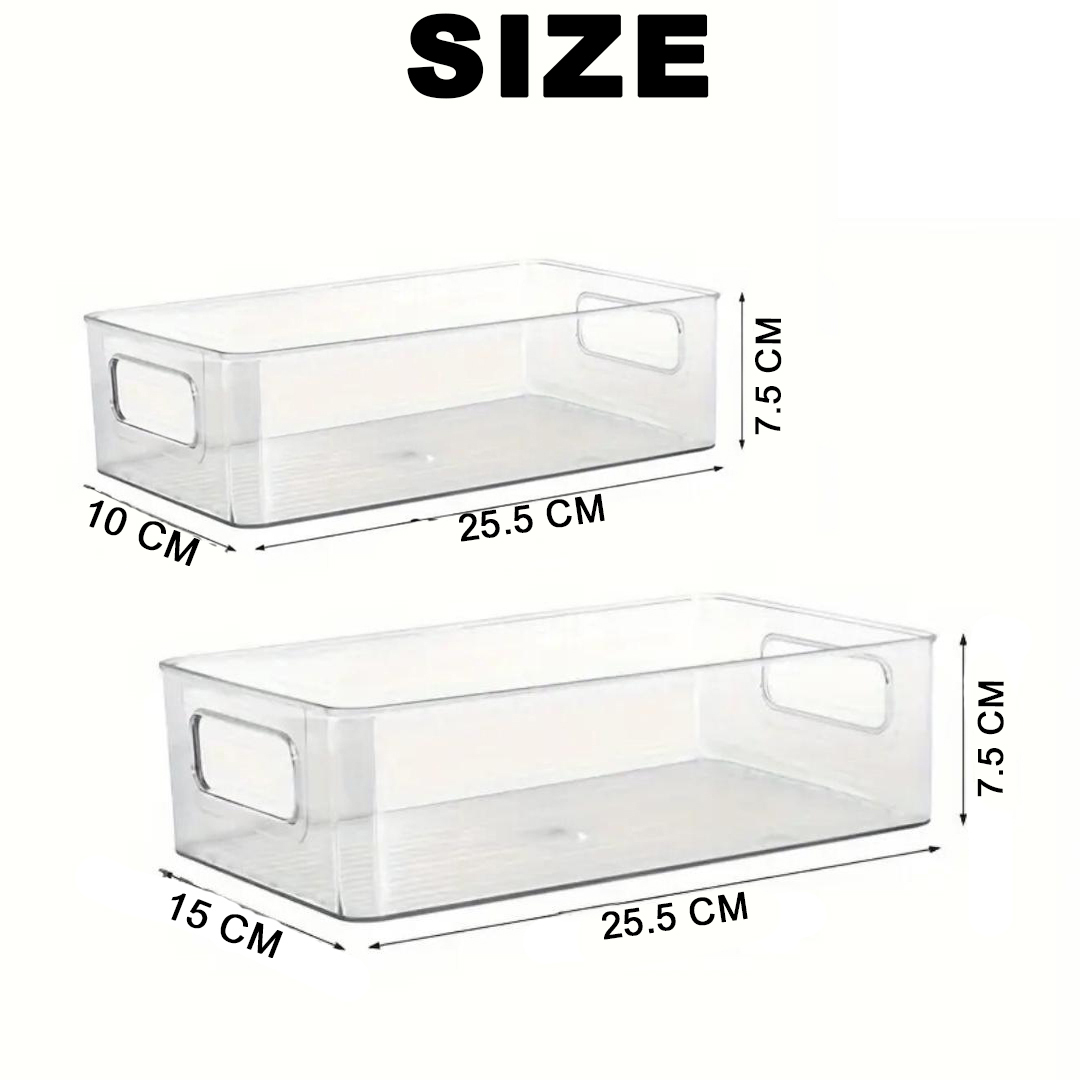 سعة تخزين واسعة: المجموعة تتضمن حجمين مناسبين—كبير (25×15×7.5 سم) وصغير (25×10×7.5 سم)—توفير مساحة كافية لتنظيم مرن داخل الثلاجة، المخزن، أو خزائن المطبخ.