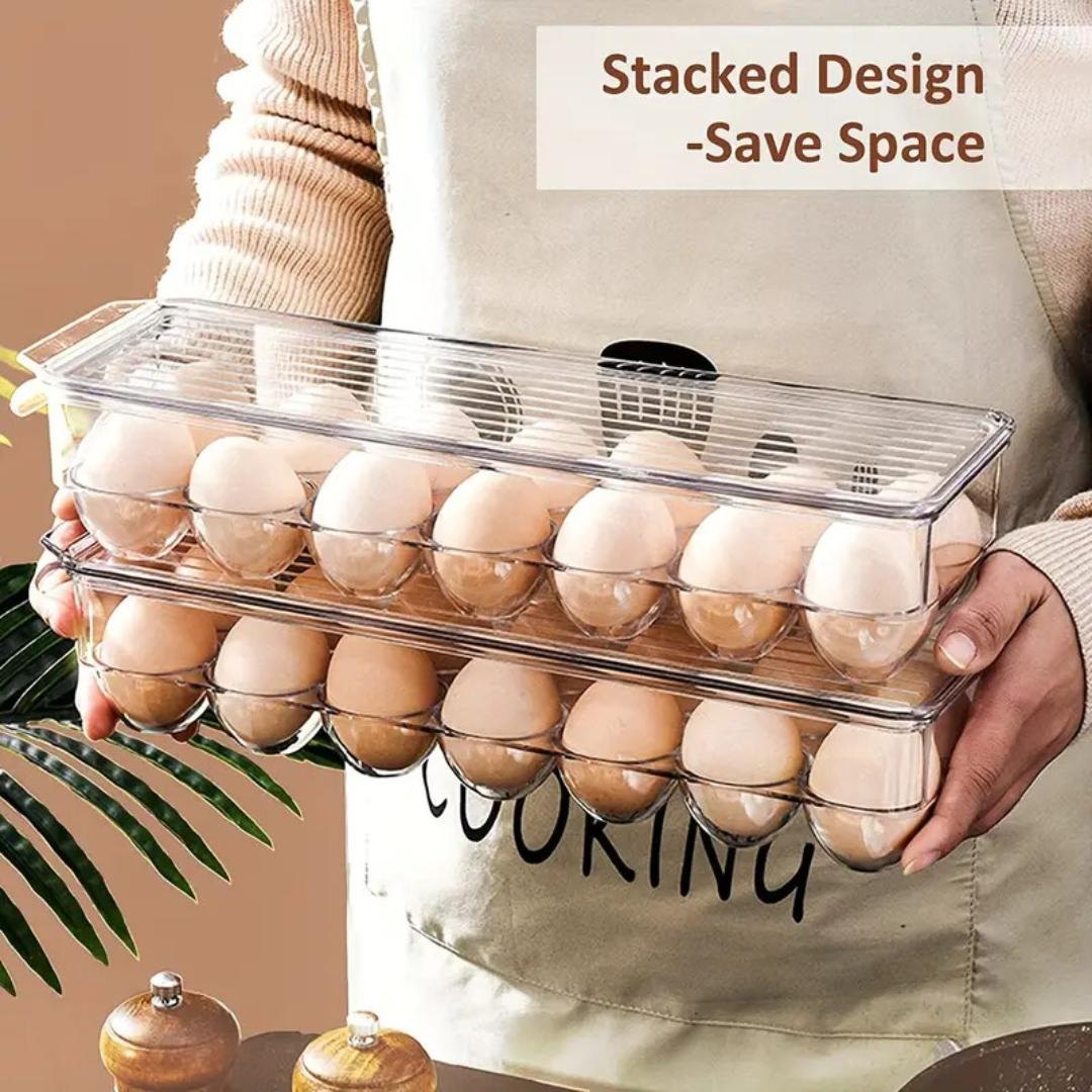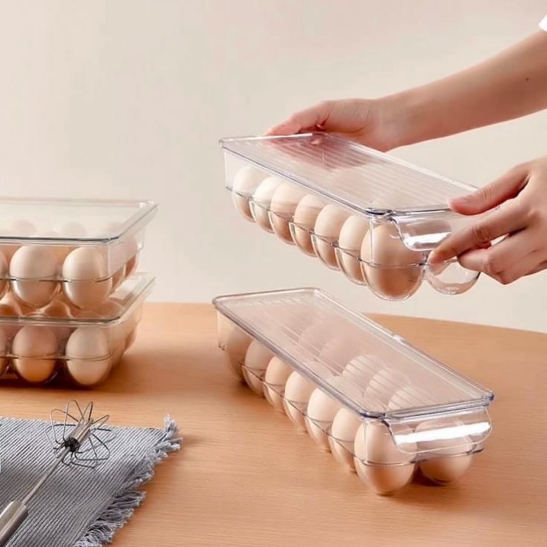 قابلة للتكديس وتوفير المساحة: تأتي مع غطاء يسمح بالتكديس الآمن لتعظيم مساحة الثلاجة دون الإضرار بالبيض.
