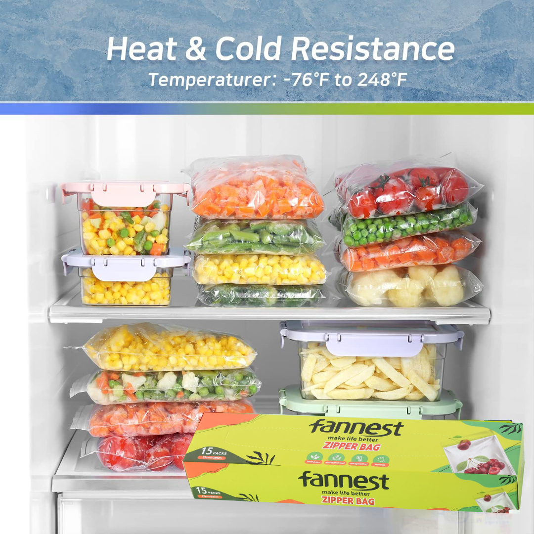 طازجة تدوم طويلًا: تتميز أكياس السوستة بشريطين مزدوجين للإغلاق وبلاستيك مرن ومحكم لمنع تسرب الهواء، مما يحافظ على نضارة الطعام ويقلل من تعرضه للهواء لتخزين صحي أكثر.