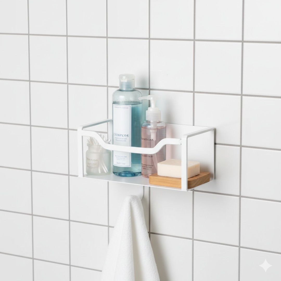 تخزين موفّر للمساحة – مثالي لتنظيم مستلزمات الاستخدام اليومي مثل الشامبو، البلسم، جل الاستحمام، وغسول الوجه وغيرها من أدوات الحمام.