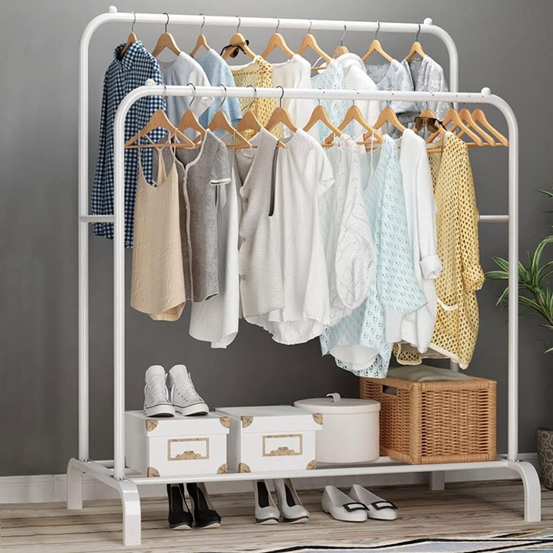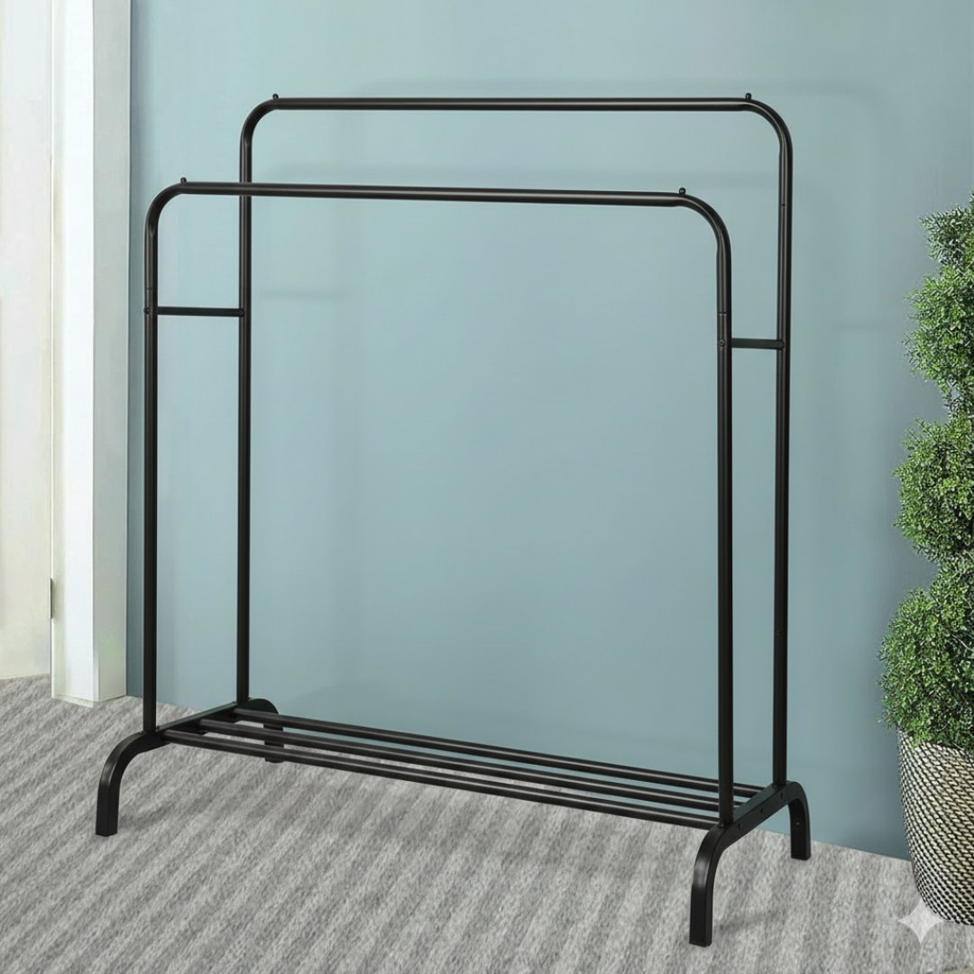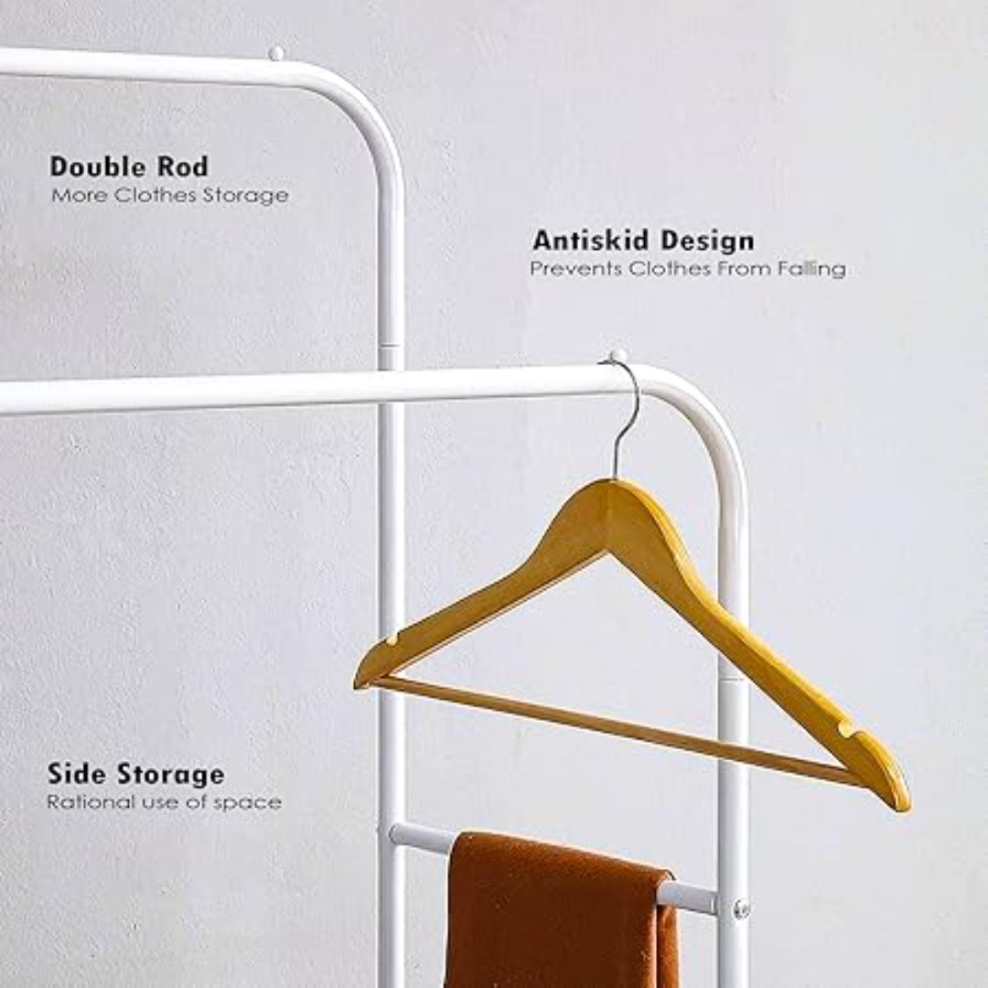 تصميم واسع بقضيبين: يتميّز بقضيبين قويين للتعليق يوفّران مساحة كبيرة لترتيب القمصان والفساتين والسترات وغيرها — مناسب للاستخدام اليومي وتخزين الملابس الموسمية.