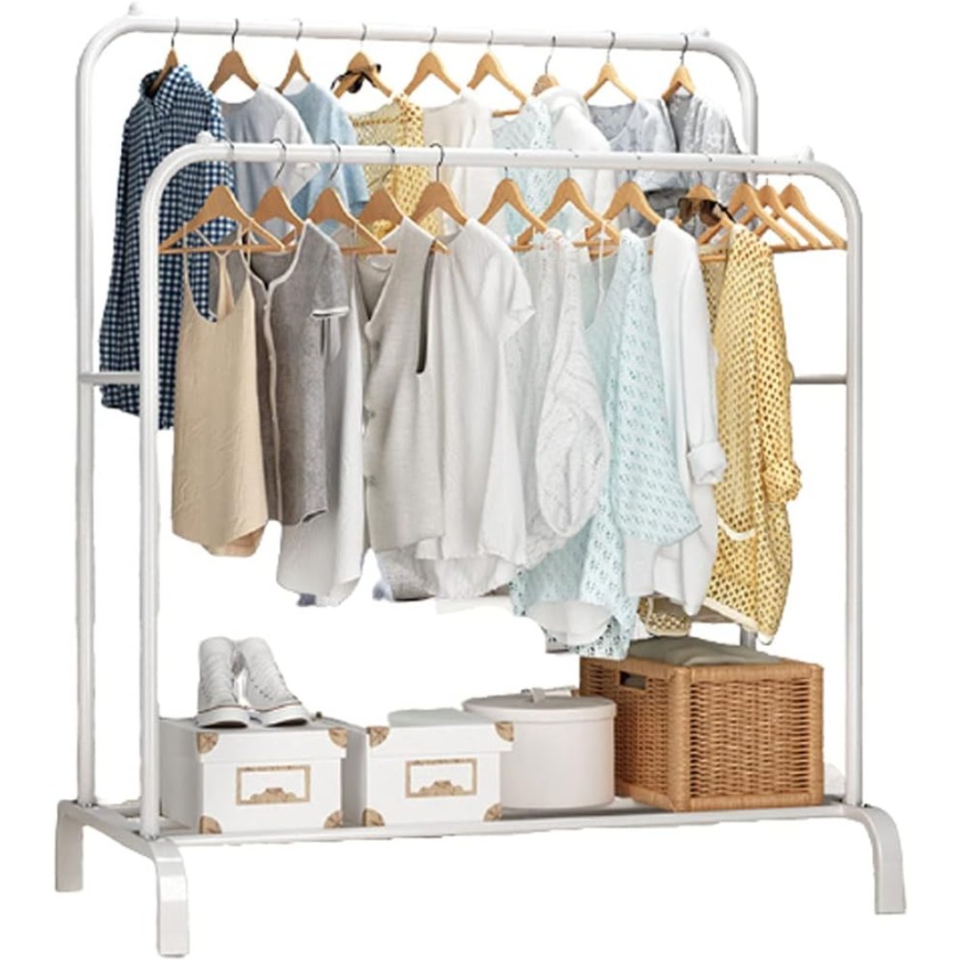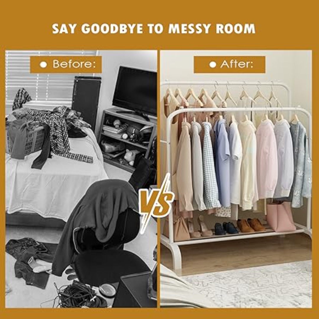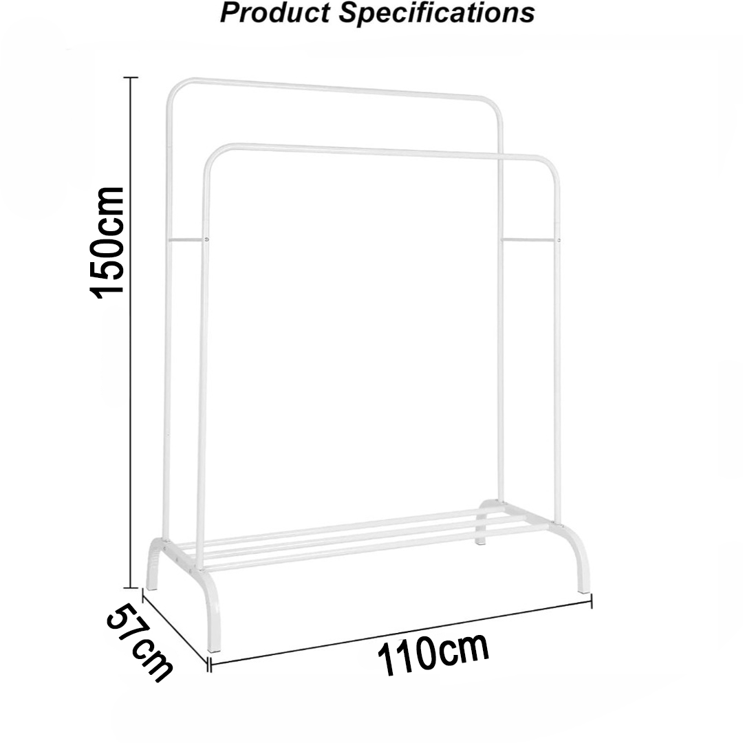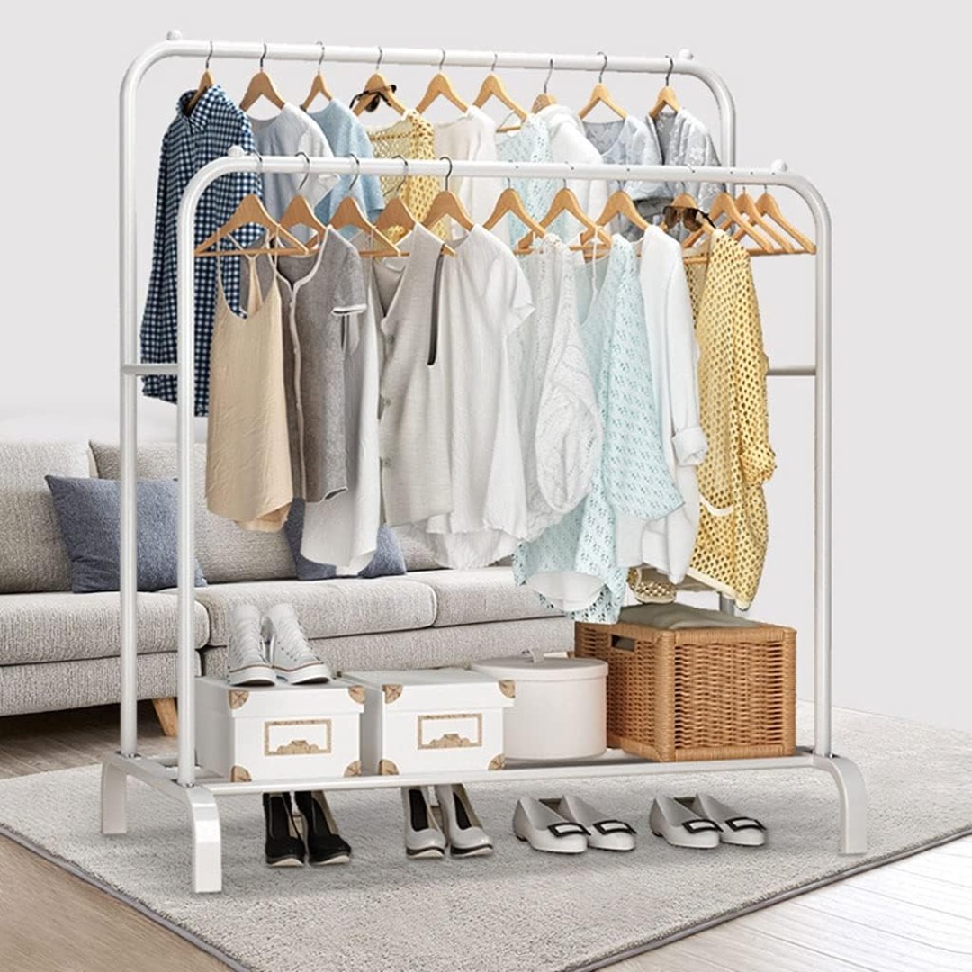 تصميم واسع بقضيبين: يتميّز بقضيبين قويين للتعليق يوفّران مساحة كبيرة لترتيب القمصان والفساتين والسترات وغيرها — مناسب للاستخدام اليومي وتخزين الملابس الموسمية.