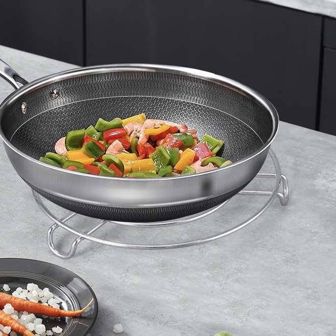 حامل معدني متعدد الاستخدامات لتثبيت الأواني والمقالي، مصنوع من الفولاذ المقاوم للصدأ عالي الجودة لضمان المتانة والثبات أثناء الاستخدام.