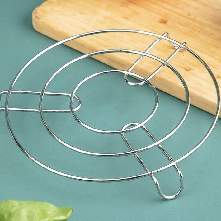 يتميز بتصميم دائري ثابت يمنع الانزلاق أو التحرك، مما يجعله مثاليًا لاستخدامه كـ قاعدة حرارية للأواني الساخنة على الطاولة أو سطح المطبخ، كما يمكن استخدامه داخل القدر كـ رف بخار لطهي الخضروات أو المأكولات بالبخار.
