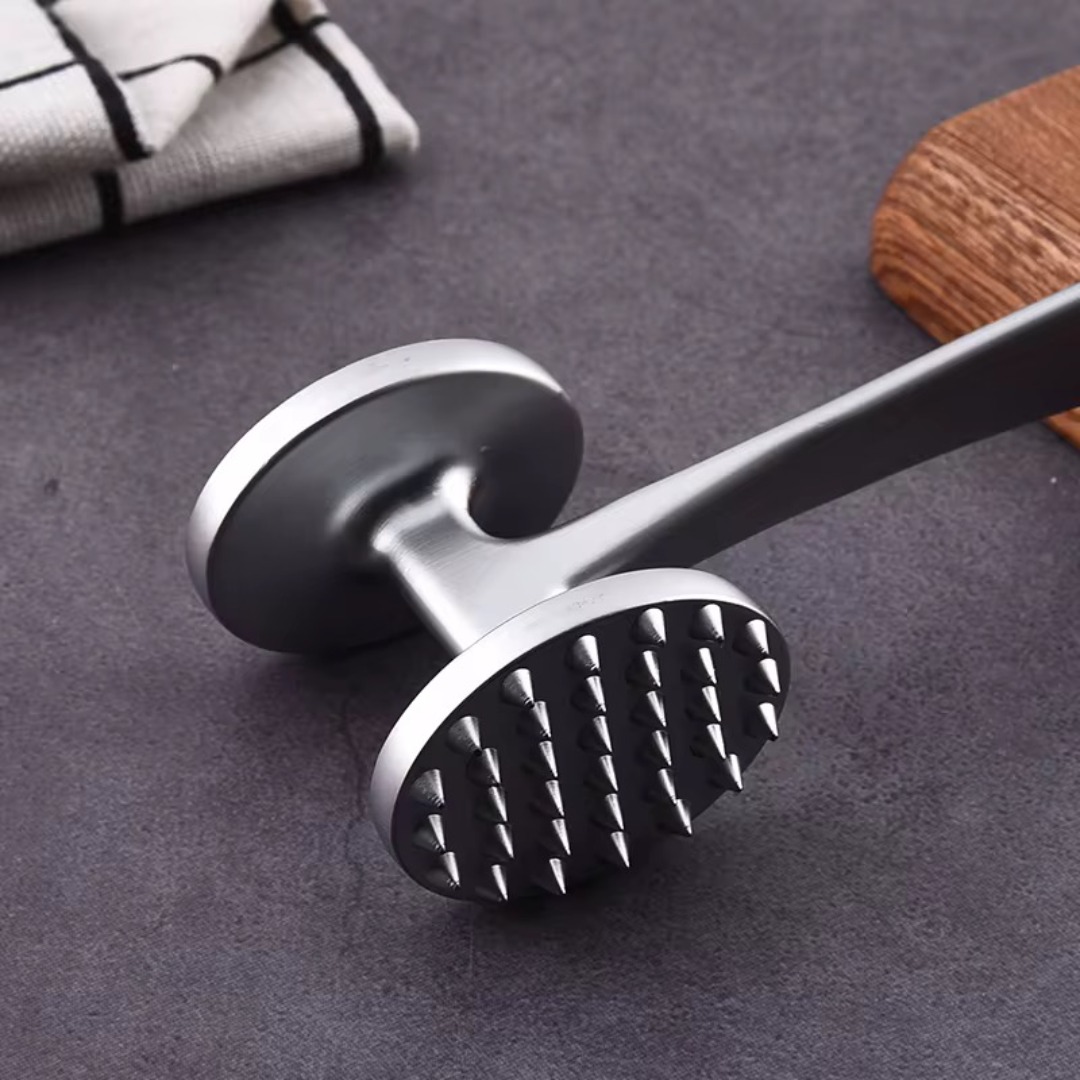 تطرية فعّالة للحوم – تصميم مزدوج الأطراف يحتوي على جانب مسطح للطرق وجانب محبّب لتطرية الأنسجة، مثالي لتليين قطع اللحم القاسية.