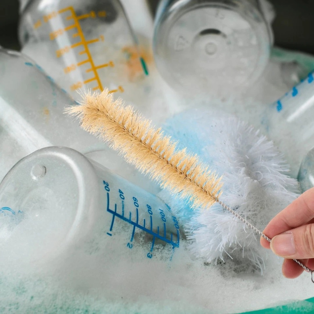 تنظيف فعّال – مزودة بشعيرات ناعمة ولكن قوية تزيل الأوساخ والدهون وبقايا السوائل من الأماكن الصعبة داخل الزجاجات بسهولة، لضمان نظافة شاملة.