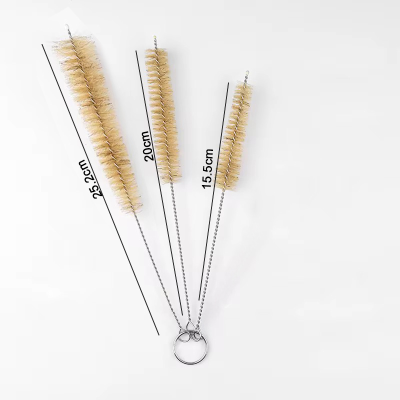 تصميم مدمج وعملي – تأتي الفرش بثلاثة أحجام مختلفة (15.5 سم، 20 سم، 25.2 سم) لتناسب جميع أحجام الزجاجات، مع حلقة معدنية لسهولة التخزين بعد الاستخدام.