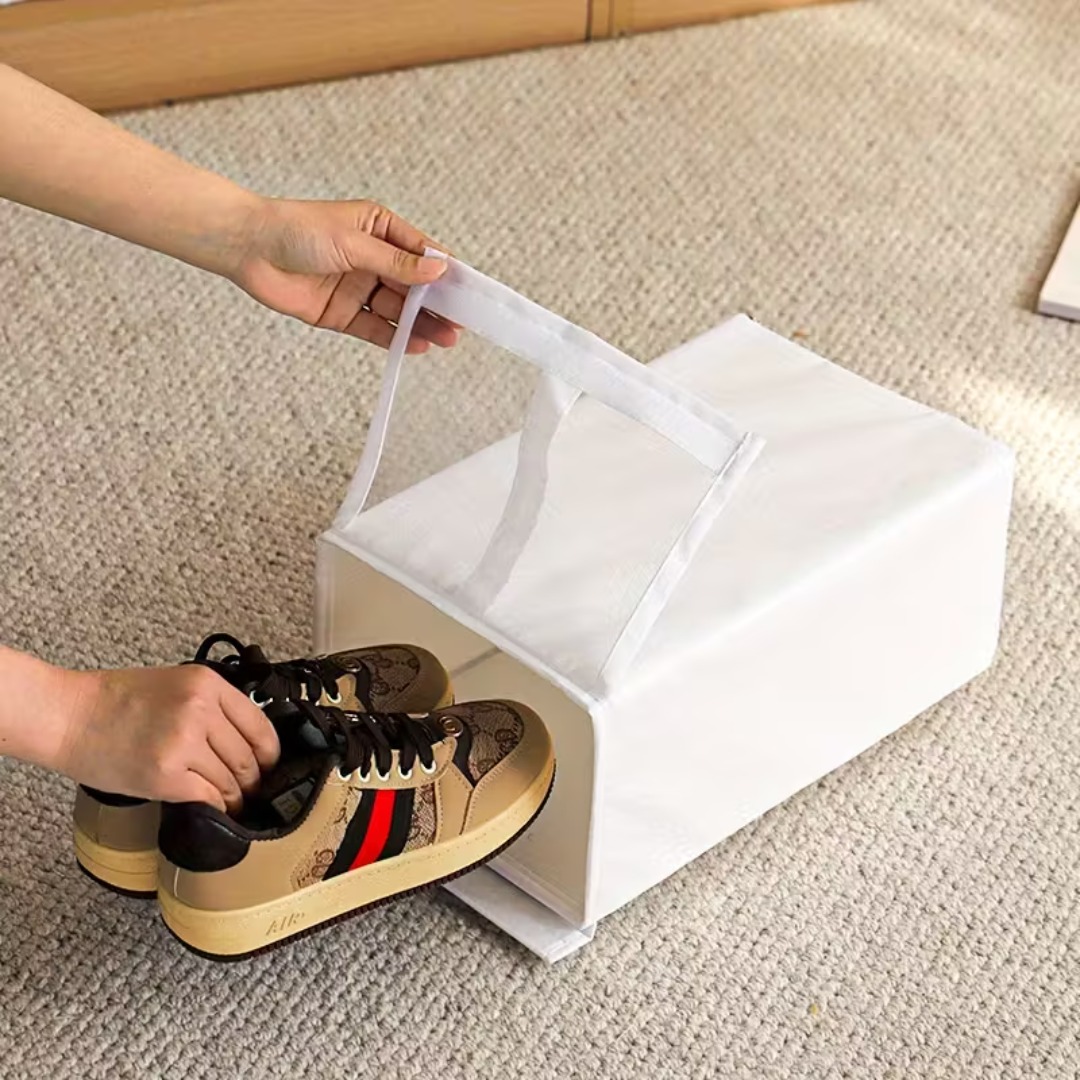 سهل الاستخدام – يتميز بتصميم سحب مريح مع مقابض تسهّل فتح الصندوق وإغلاقه بسهولة لتخزين أو إخراج الأحذية دون عناء.