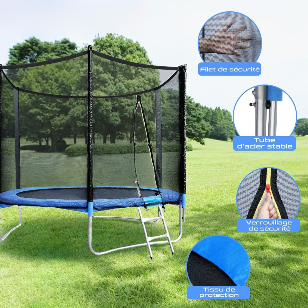 سهولة الوصول – مزود بسلم مريح يسهل الدخول والخروج من الترامبولين، مناسب للأطفال والبالغين على حد سواء.
