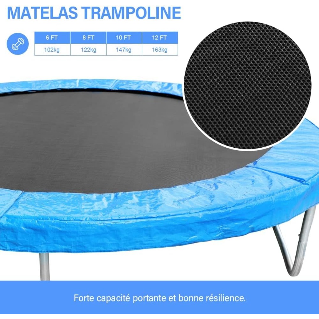 ثابت وآمن – بقطر 183 سم ونوابض معززة، يضمن تجربة قفز مستقرة وآمنة حتى مع استخدام أكثر من شخص في الوقت نفسه.