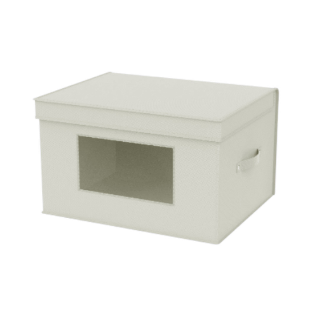 نافذة أمامية شفافة: يتميز الصندوق بنافذة شفافة تتيح لك رؤية المحتويات دون الحاجة إلى فتحه، مما يجعله عمليًا لتنظيم الأغراض.