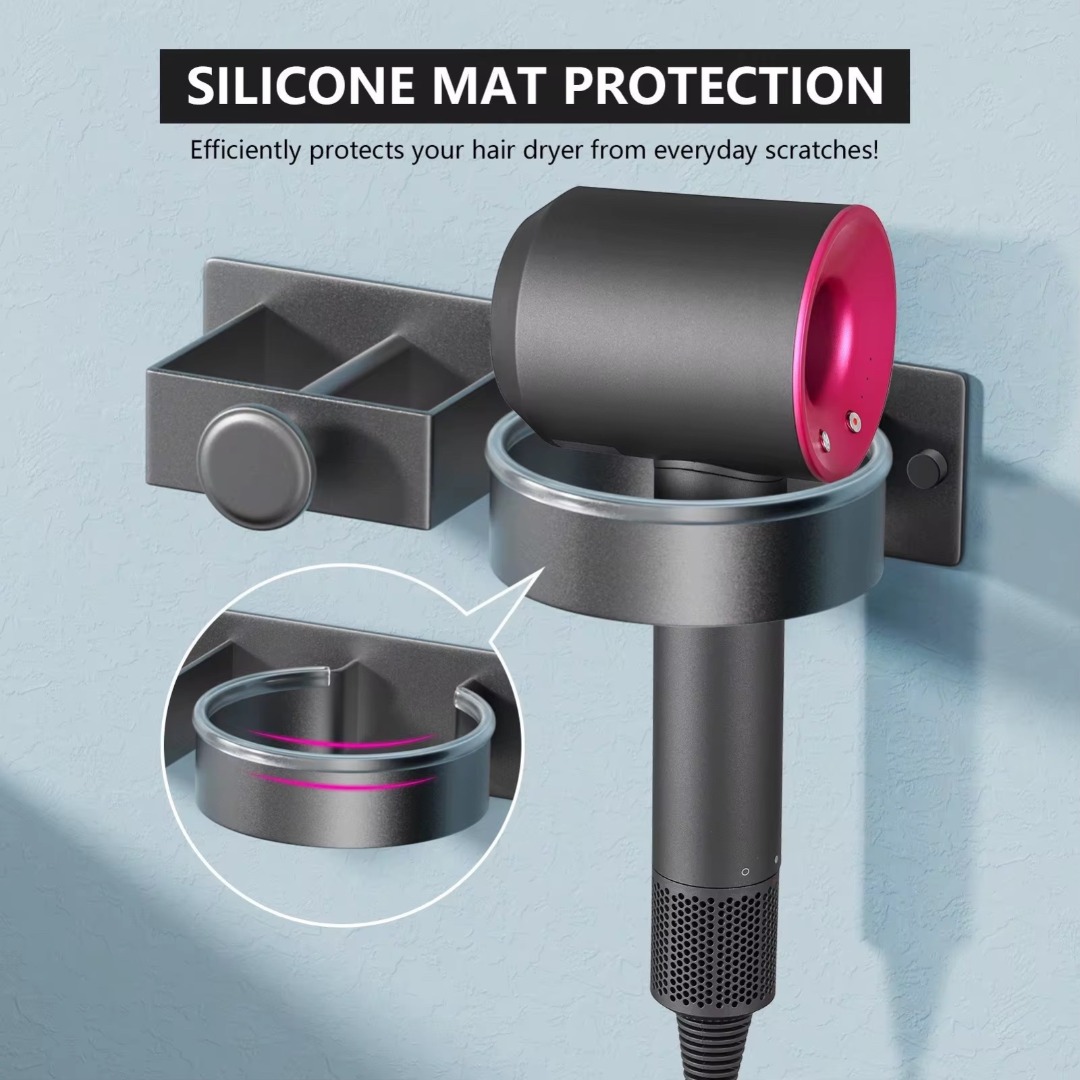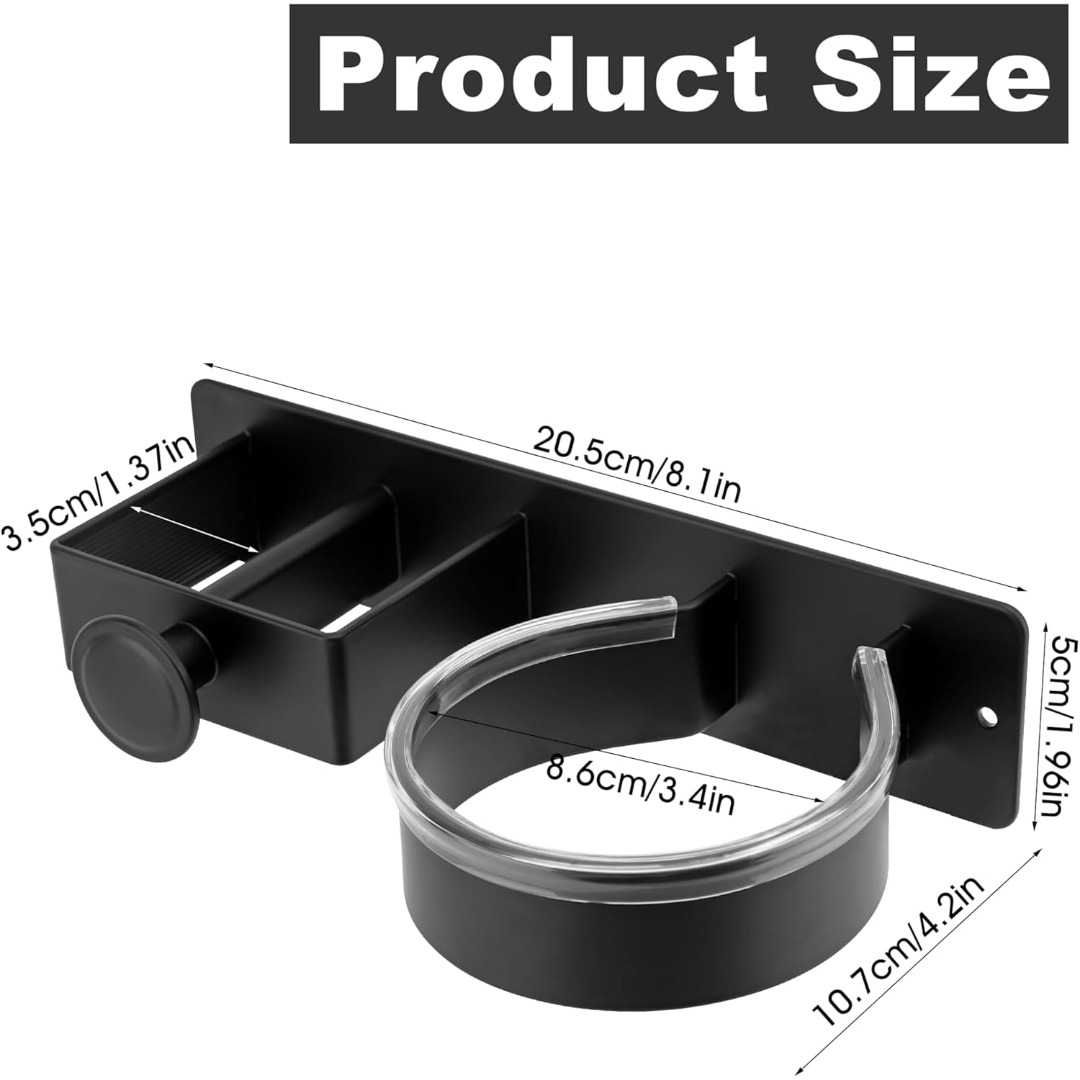 تصميم متعدد الوظائف: يتضمن المنتج عدة أقسام مصممة لحمل أدوات مثل مجفف الشعر أو مكواة الشعر أو أدوات مماثلة، مما يجعله مثاليًا لتنظيم الحمام أو طاولة التجميل.