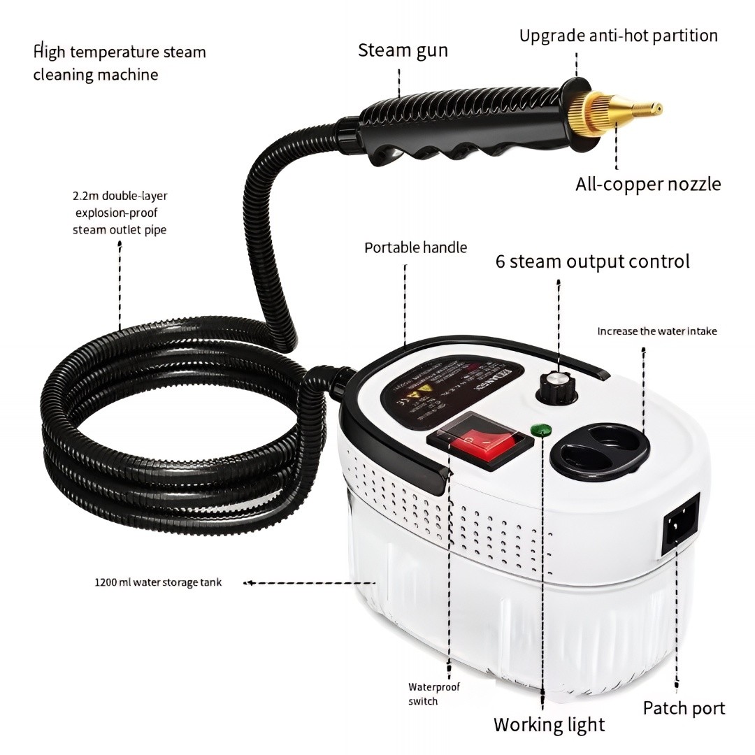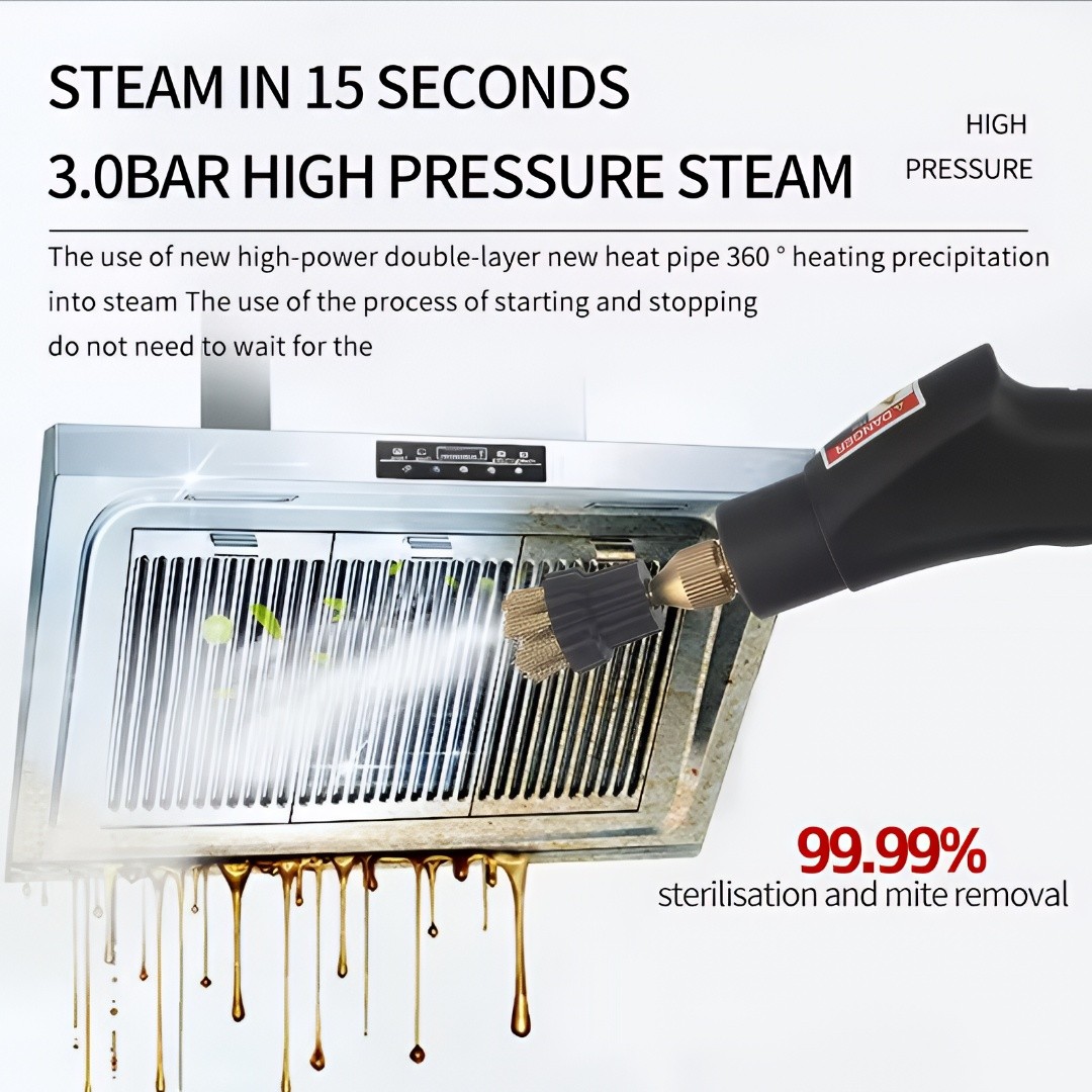أداء عالي القوة – مزود بنظام تسخين بقوة 2500 واط ينتج ضغط بخار قوي يبلغ 3.0 بار لتنظيف عميق وفعّال للدهون والبقع والأوساخ.