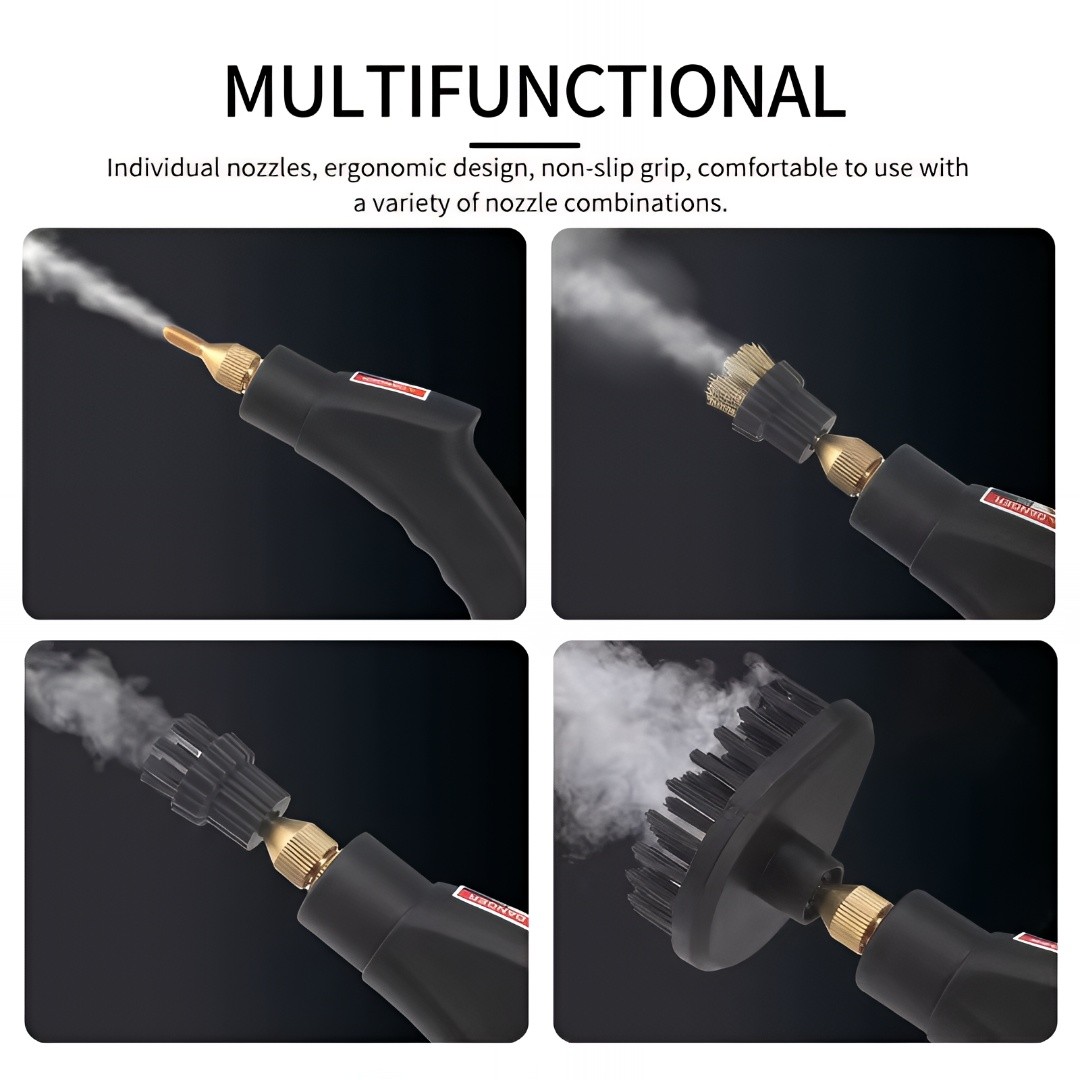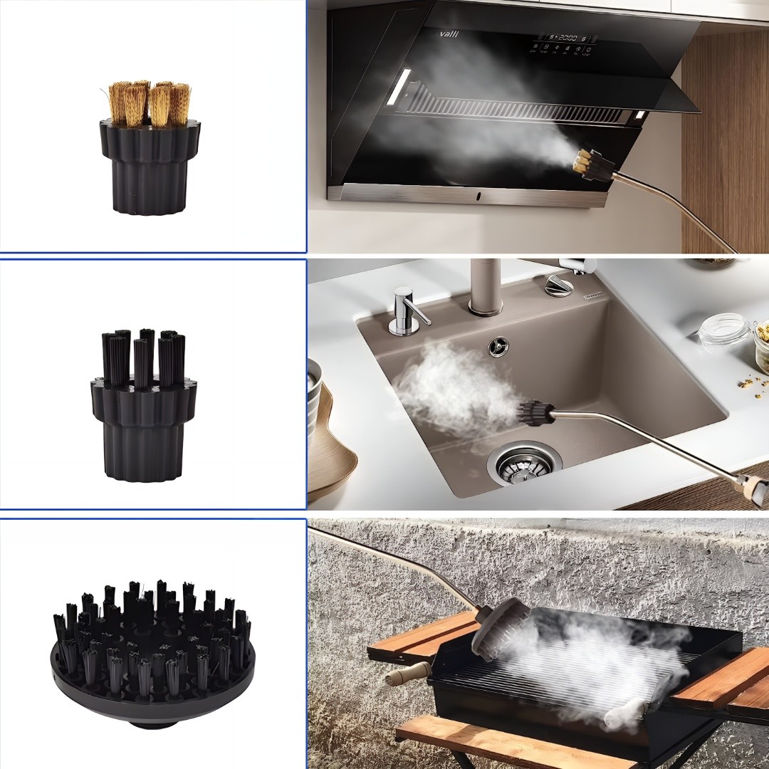 ملحقات متعددة الاستخدام – يأتي مع رؤوس فرش مختلفة، فوهة رش طويلة، وأدوات تمديد مصممة للمطابخ، الحمامات، السيارات، والأرضيات.