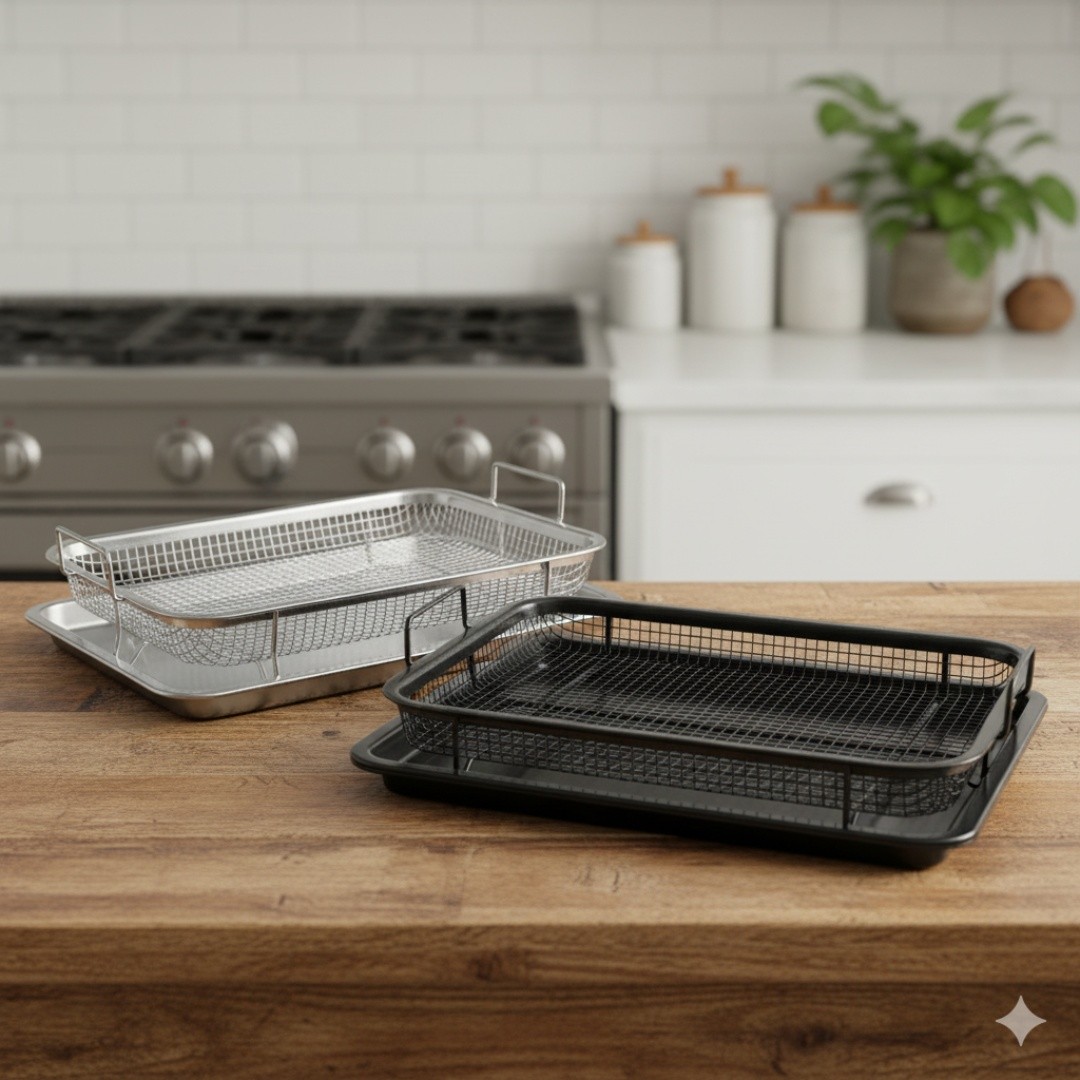 صينية تقطير قابلة للإزالة: تجمع الصينية السفلية الزيت والفتات الزائد، مما يحافظ على نظافة الفرن أو سطح المطبخ.