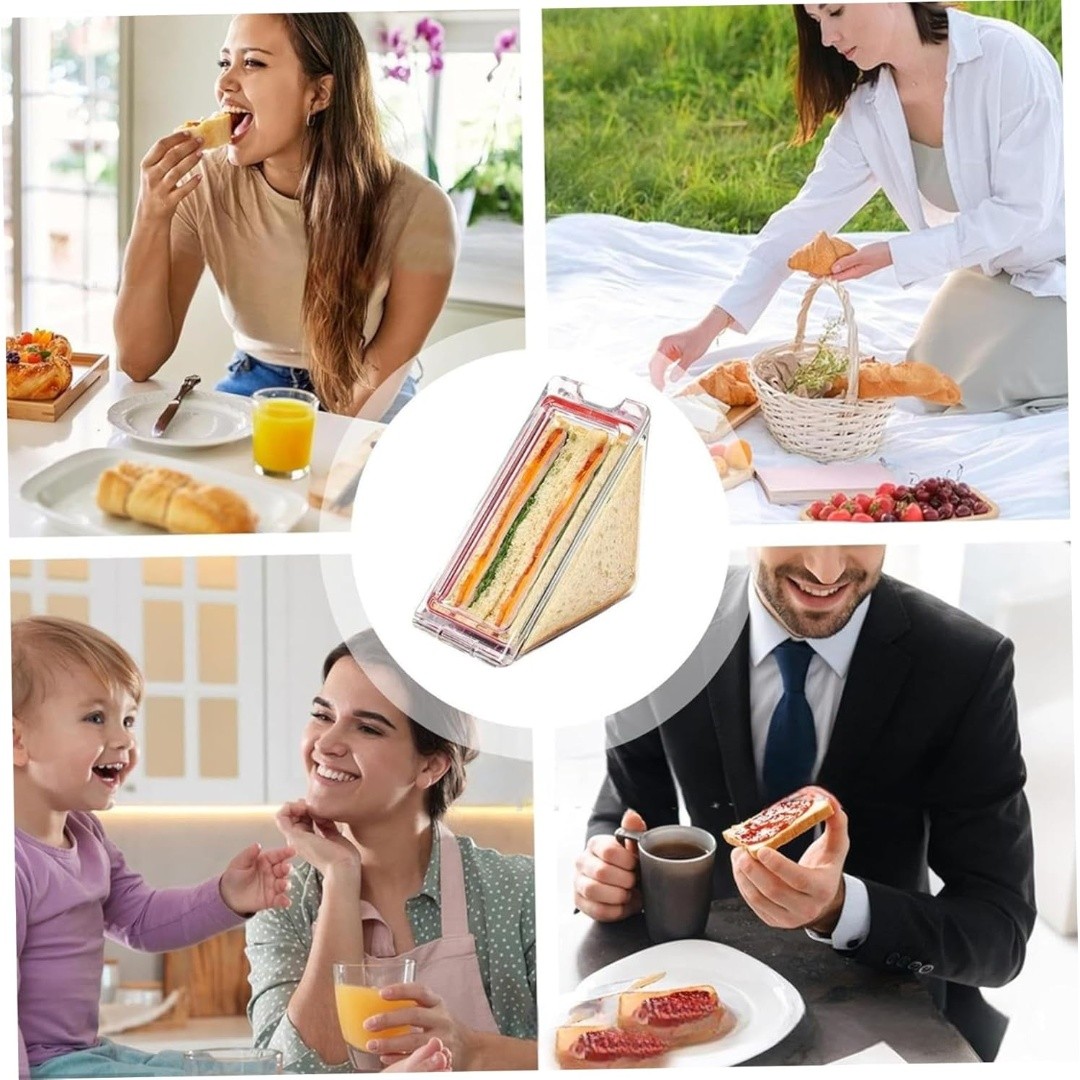 تصميم مثلثي مميز: مصمم لاحتواء الساندويتشات المثلثة بشكل مثالي دون ضغط الحواف أو الزوايا، مما يحافظ على شكلها الشهي والمرتب.