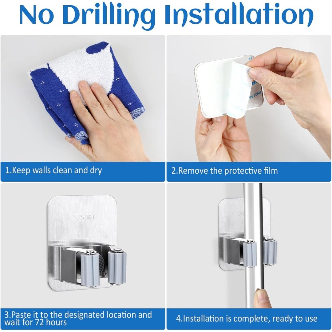 توفير للمساحة: يُعلق المماسح والمكانس والأدوات على الحائط بشكل منظم، مما يوفر مساحة الأرض ويحافظ على نظافة المكان.