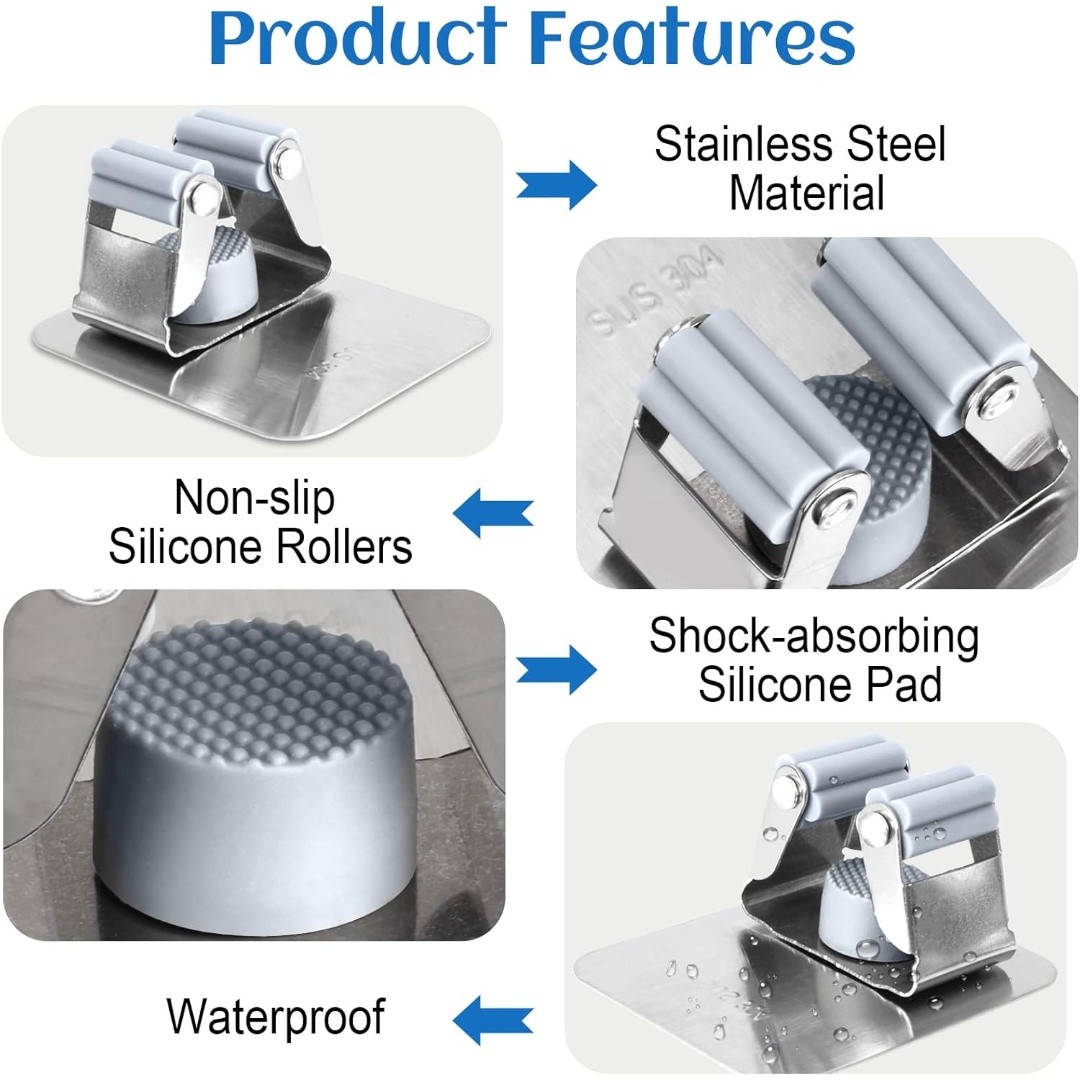 تصميم متين من الفولاذ المقاوم للصدأ: مصنوع من فولاذ SUS 304 عالي الجودة لضمان قوة ومتانة ومقاومة للصدأ تدوم طويلاً مقارنة بالحوامل البلاستيكية أو الألمنيوم.