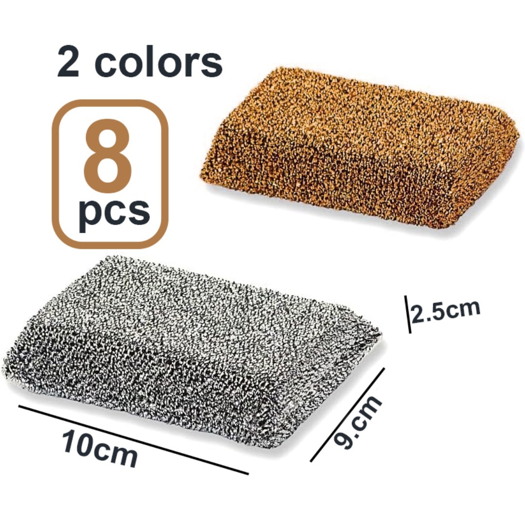 طقم مكون من 8 قطع: يأتي بلونين ذهبي وفضي نابضين بالحياة مع عدة إسفنجات لتلبية احتياجات التنظيف اليومية وسهولة الاستبدال عند الحاجة.