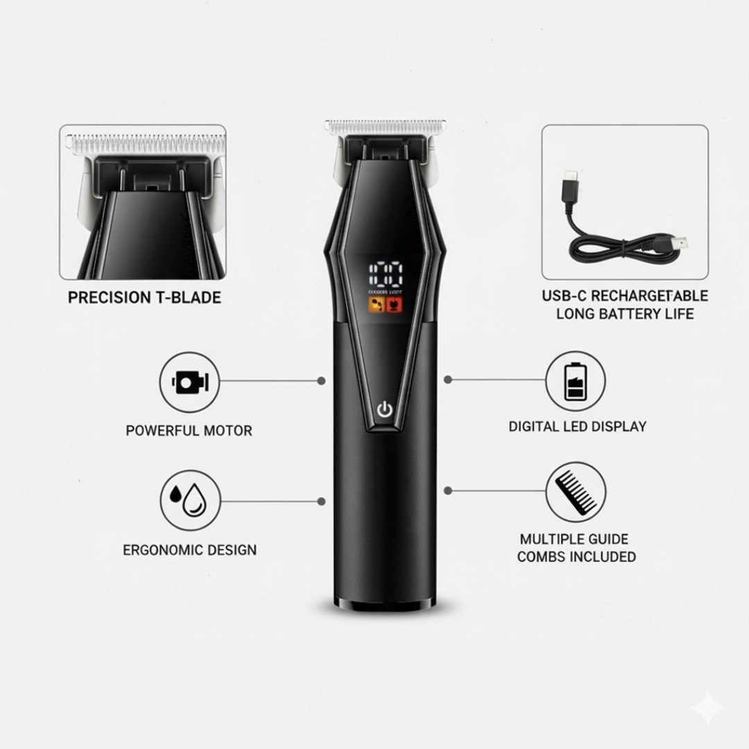 تقنية شفرة T دقيقة: توفر حلاقة نظيفة وحادة مثالية لتحديد اللحية والتفاصيل الدقيقة والعناية الاحترافية.