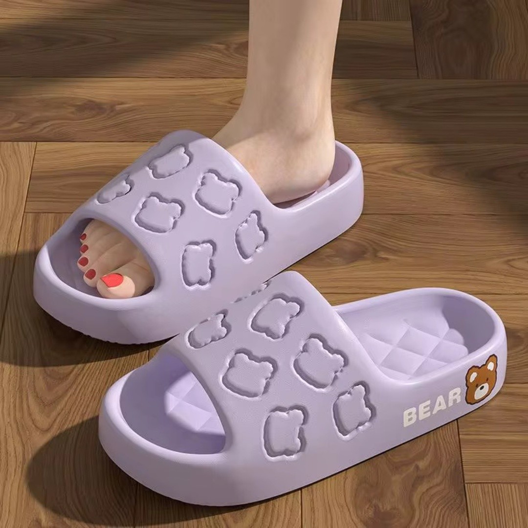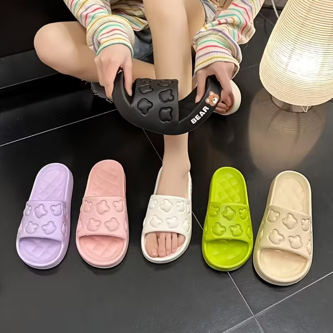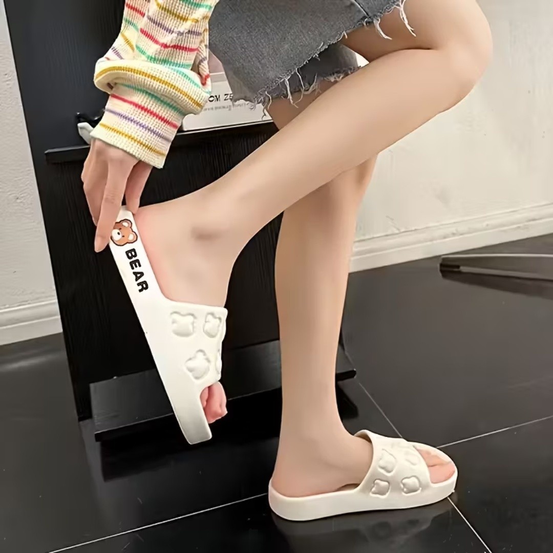 شبشب بحزام مزين بنقوش رأس دب بارزة