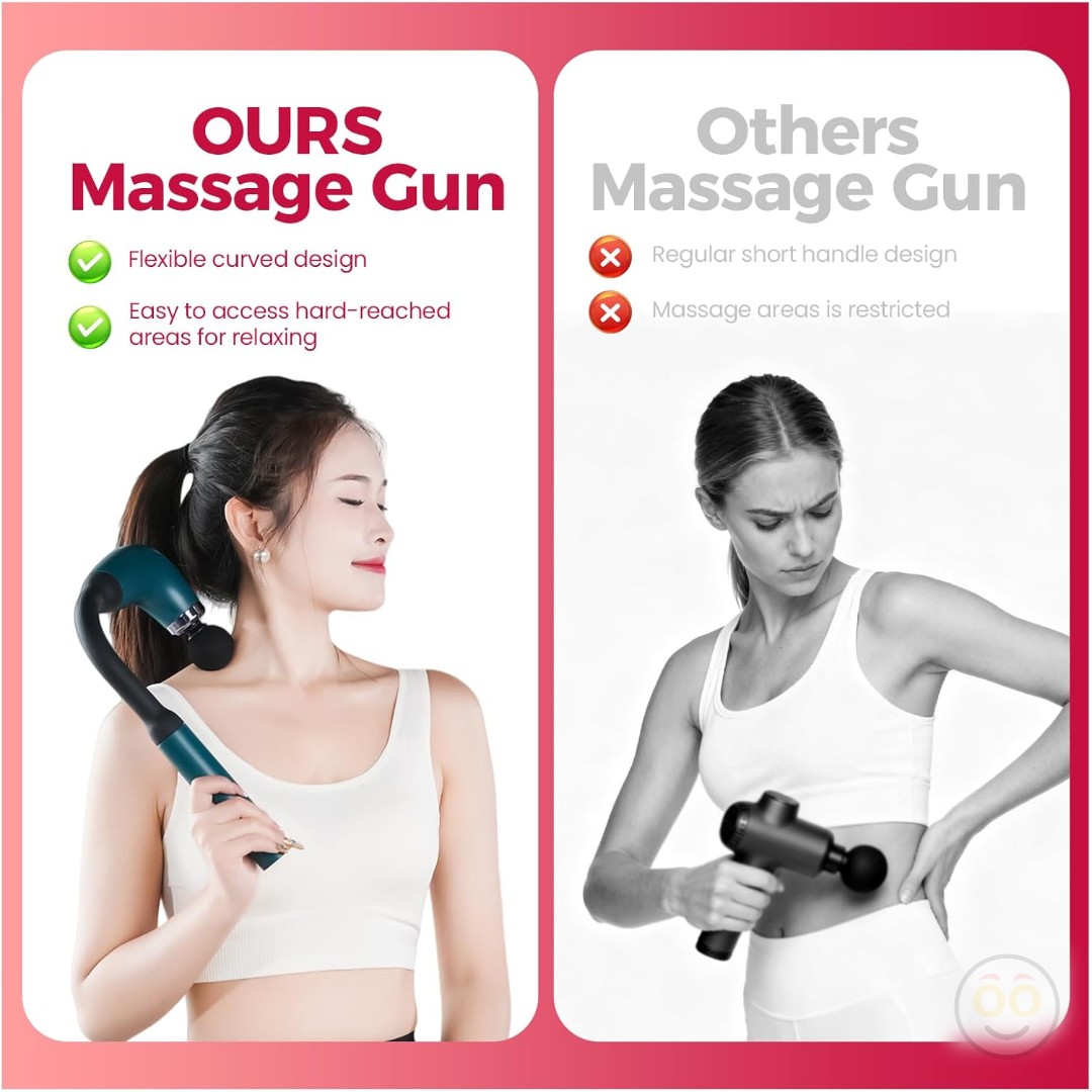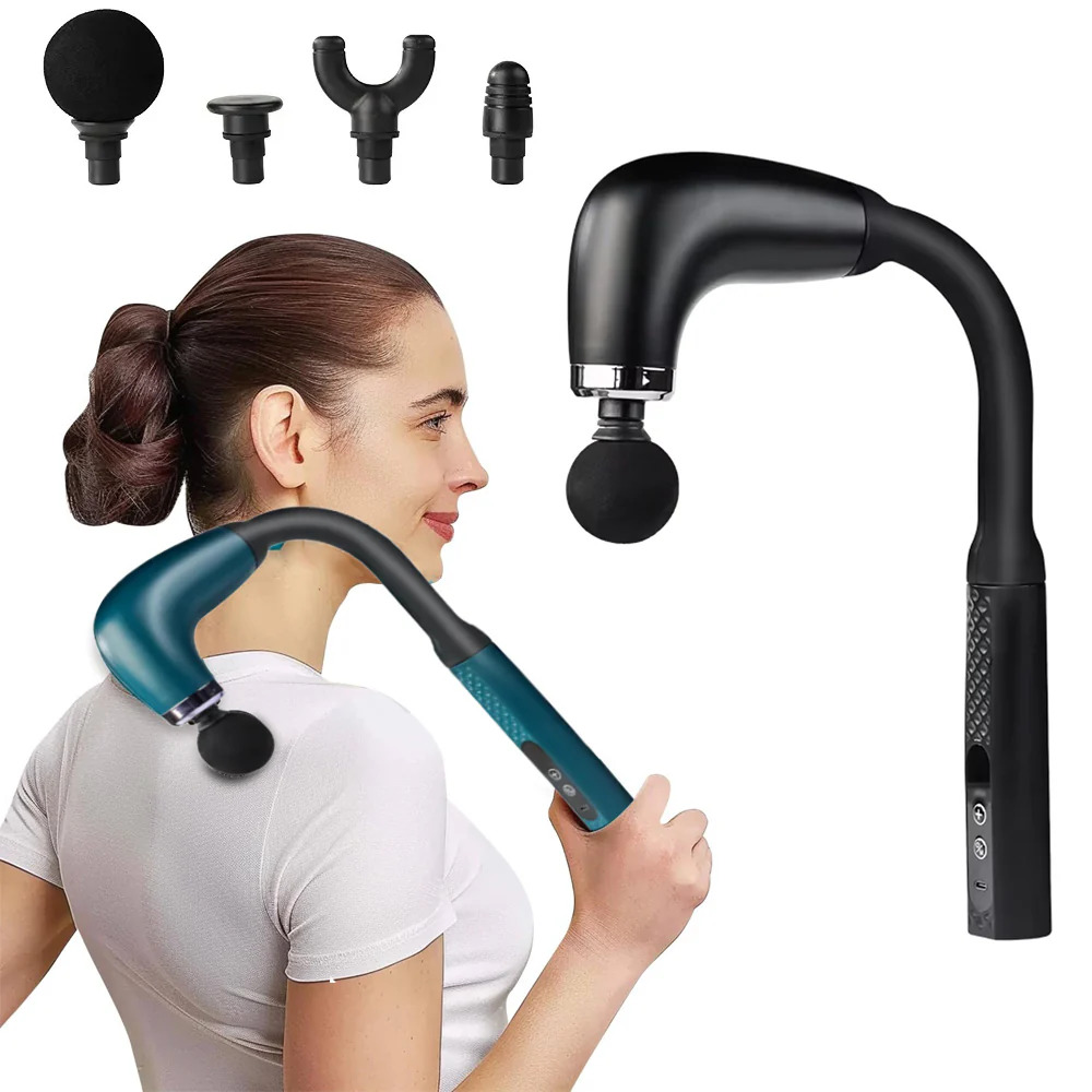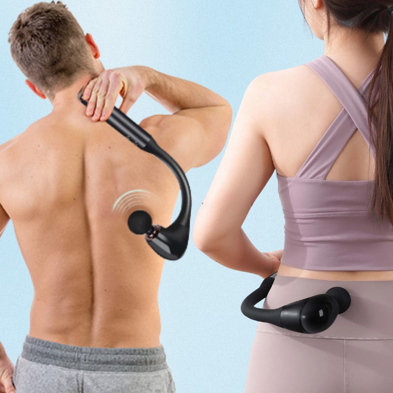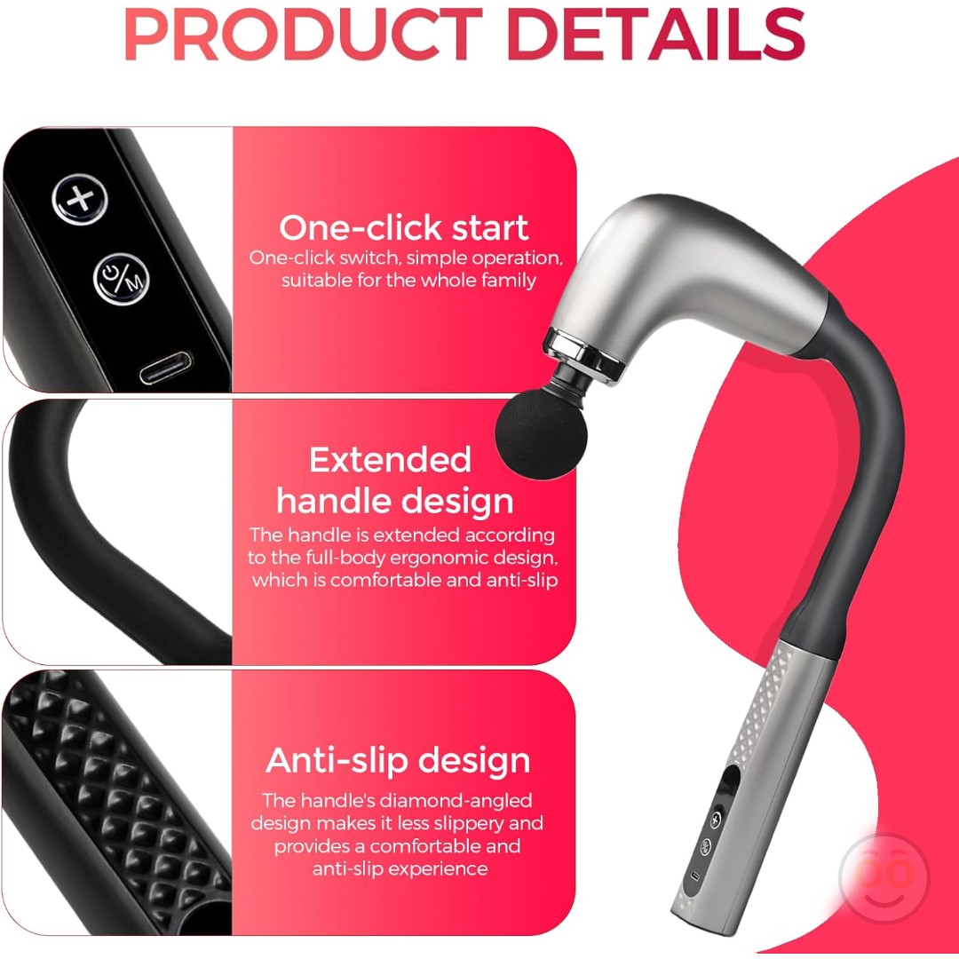 تصميم مريح بمقبض ممتد – يتميّز بمقبض منحنٍ بزاوية 120° سهل الإمساك يتماشى مع العمود الفقري، مما يتيح لك الوصول بسهولة لتدليك الظهر والرقبة والكتفين والذراعين والساقين – مثالي لتخفيف الألم والاستشفاء بعد التمارين.