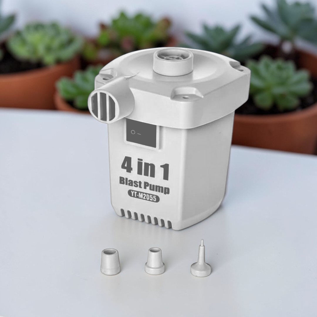 تدفق هواء قوي عالي السرعة: يوفر ضغط هواء قوي ومستمر لنفخ المراتب والألعاب المائية وغيرها من المنتجات القابلة للنفخ بسرعة وسهولة.