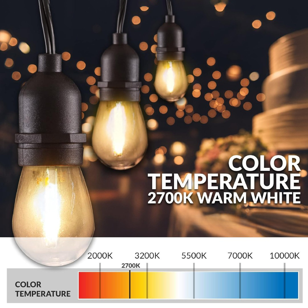 وهج دافئ بنمط إيديسون الكلاسيكي: لمبات LED S14 تمنح إضاءة مريحة مناسبة للجلسات والعشاء والفعاليات الخارجية.
