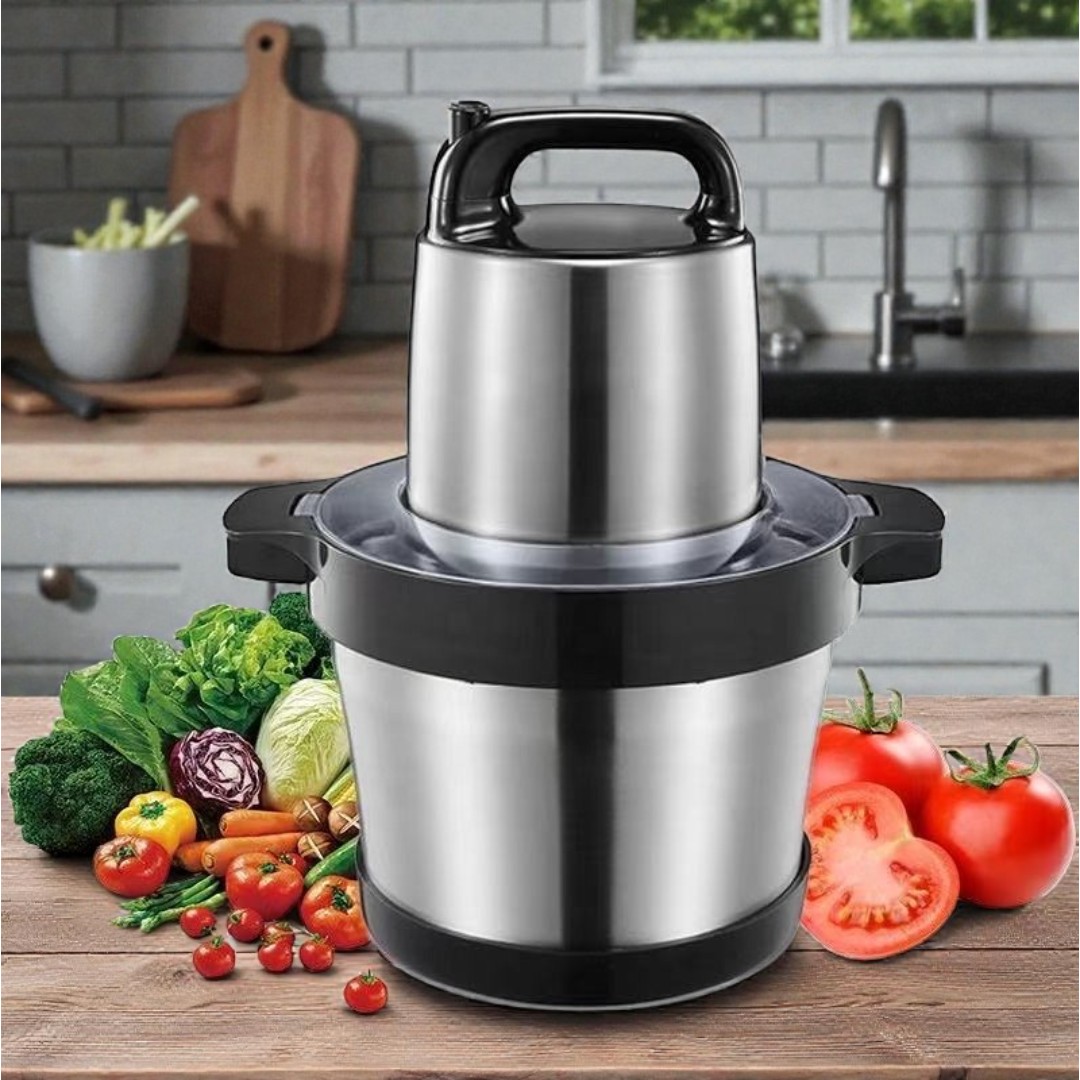 وعاء بسعة كبيرة 8 لتر: وعاء ستانلس ستيل واسع بسعة 8 لترات يتعامل بسهولة مع كميات عائلية، مثالي لفرم اللحوم والخضروات والمكسرات والصلصات دفعة واحدة.